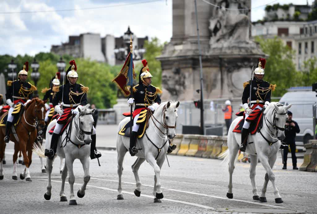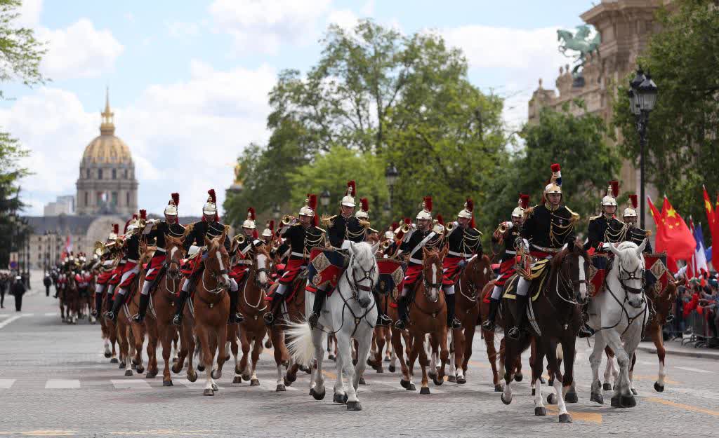 歡迎儀式後,習近平和夫人彭麗媛在共和國衛隊148名騎兵組成的禮兵馬隊和摩托車隊護衛下,乘車前往愛麗舍宮。