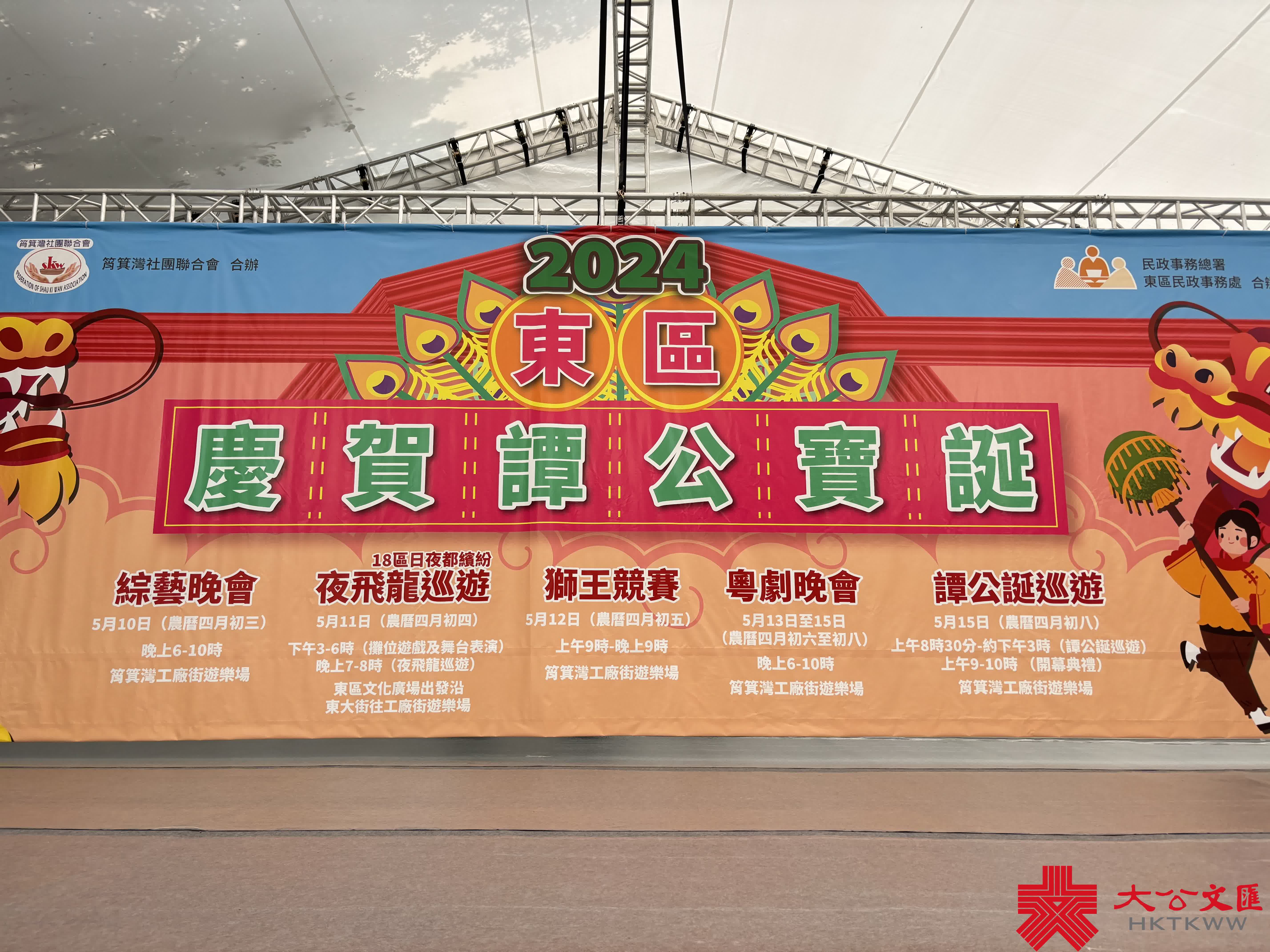 (大公文匯全媒體記者 李九歌)為慶祝每年農曆四月初八的「譚公誕」,東區將於2024年5月9日至17日期間舉行「東區慶賀譚公寶誕2024」,今年「譚公寶誕」新增一項盛事「閃耀東區夜飛龍」,首次於晚上舉行富有東區特色的夜光舞龍及舞獅表演。