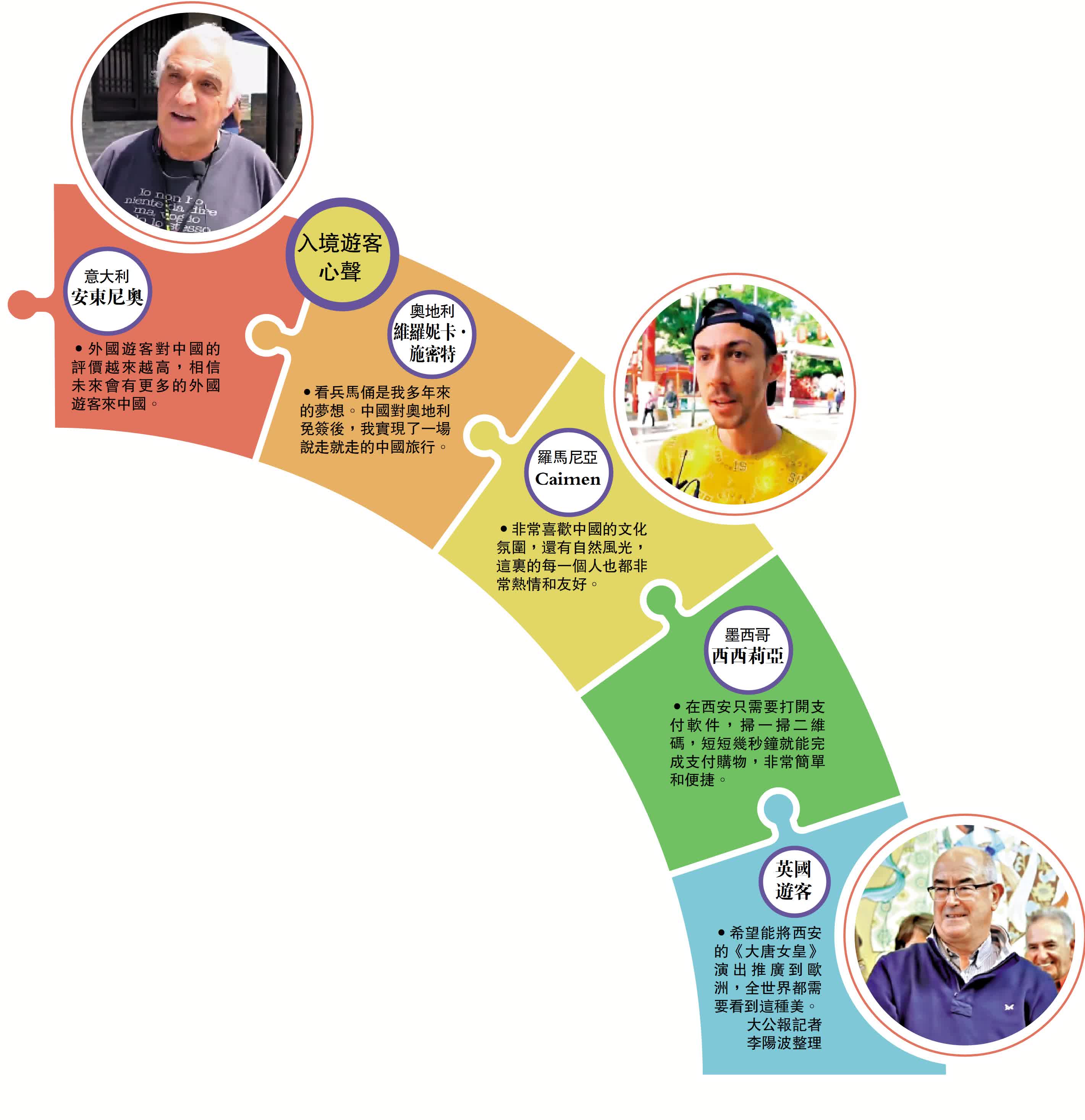 「西安以它獨特的魅力,正在成為意大利民眾中國旅遊的首選目的地。」作為一個來自意大利的22人旅行團的領隊,安東尼奧雖然已經帶團來中國旅行了60多次,但每一次對於他而言都有新的感受。「現在每個月都有大概100多名意大利人來中國旅遊,想來西安旅遊的意大利遊客更多。」安東尼奧表示,外國遊客對中國的評價越來越高,相信未來會有更多的外國遊客來中國。