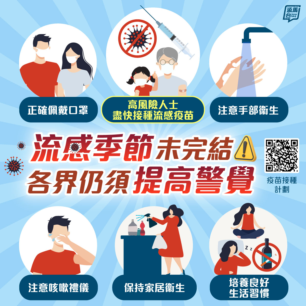 醫管局表示,近日監測數據顯示,流感及其他呼吸道病毒活躍程度處於高水平,局方會繼續密切關注病人的醫療需要,提供適切的治療。醫管局亦呼籲仍未接種流感疫苗的市民應盡快接種,特別是有較高風險患上流感及其併發症的長者及兒童,應盡快接種流感疫苗。