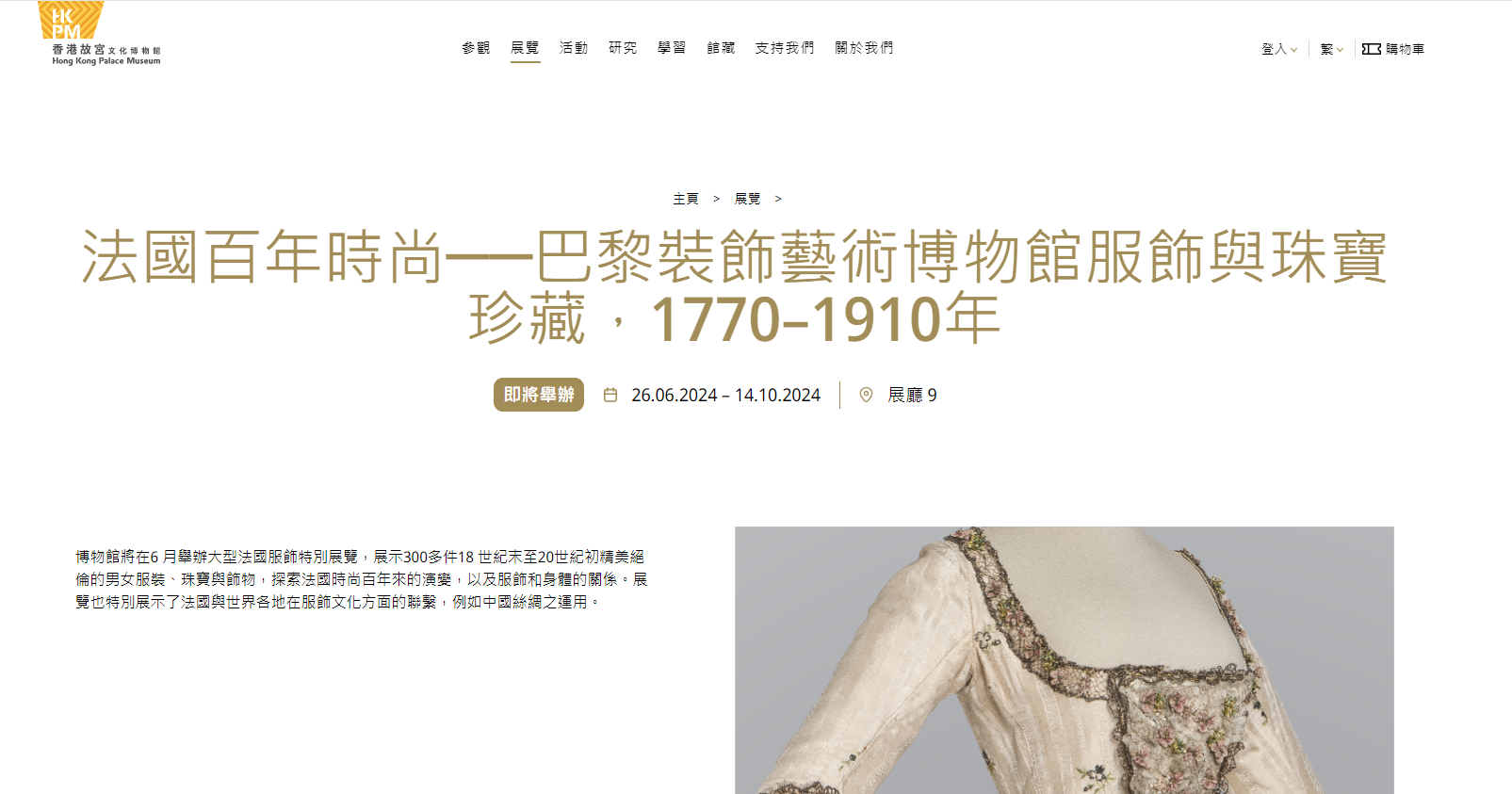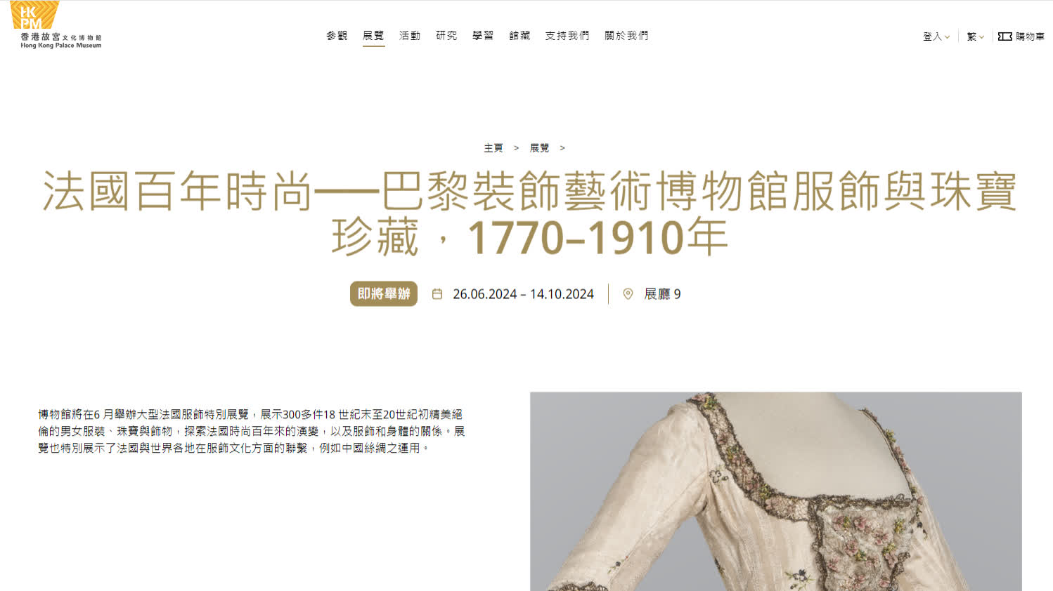 亞洲首個全面展示法國此時期服飾收藏的大型展覽