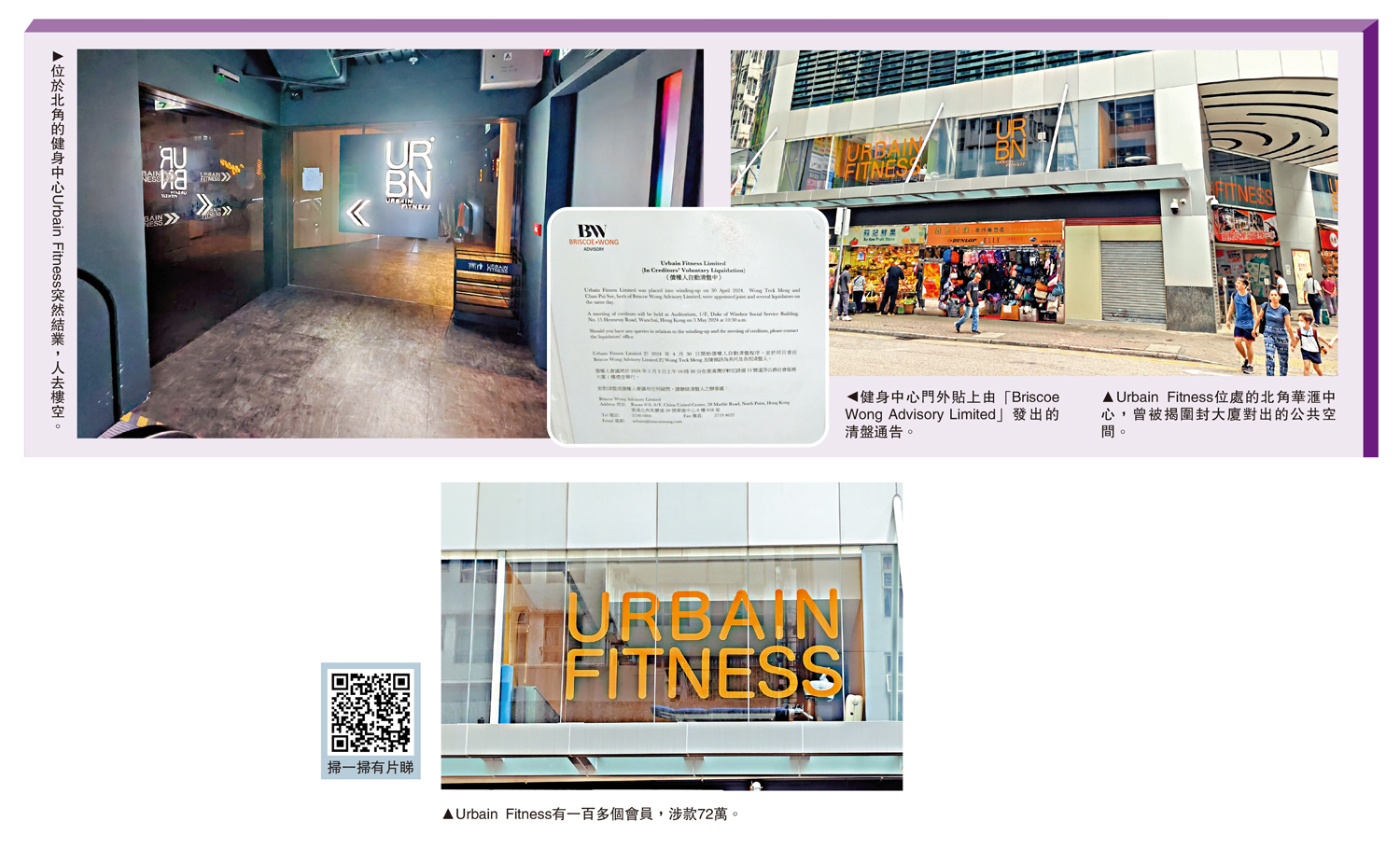 (大公報 記者 盛德文、趙明新)位於北角華滙中心一樓的健身中心Urbain Fitness近日突然結業,有苦主追討已經交付的款項時,揭發該健身中心已進入自動清盤程序。據了解,由債權人委任的清盤公司位於華滙中心8樓。