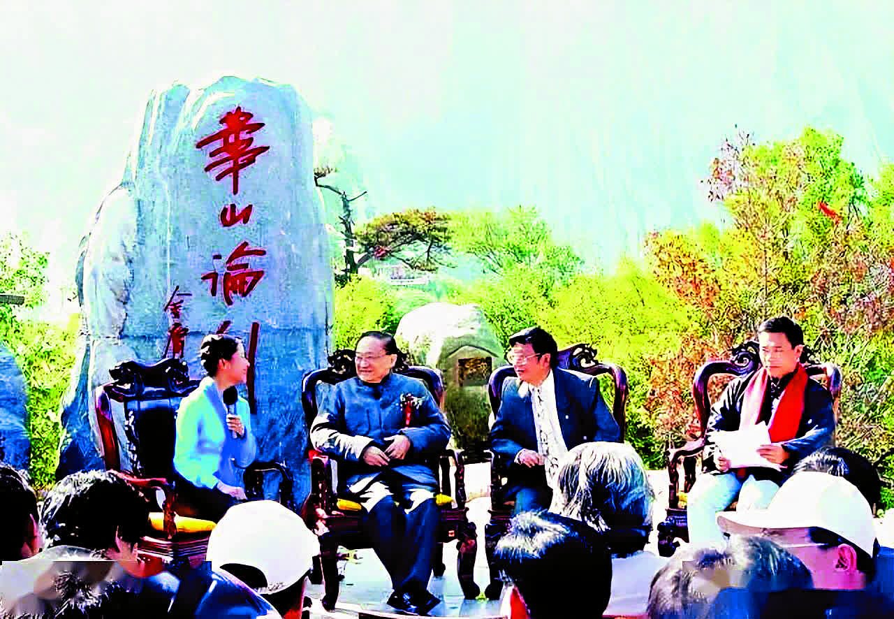一諾千金重,幾年後,耄耋之年的金庸,不遠萬里來到華山踐行約定。肖雲儒說:「那次在陝西,我們為他設計了華山論劍、碑林談藝和法門說禪三場活動。登華山途中,根據他小說的情節和人物,又設計了紅顏關、訪友關、對弈關,讓金老在華山實景中與他筆下的人物重逢。最後,在山頂與嚴家炎、張紀中、楊爭光、王魯湘各位名家論道。」他說,「先生在華山上主要談了兩個意思:一,他寫武俠小說,是因為中華民族太苦難,需要理想主義、豪邁氣質的培育,使民族精神更健全。二,他寫武俠小說常常具象和寓象相結合,具體的武俠故事後面是寓言,寓指民族精神和人格力量,以劍俠故事引向國之大者。」