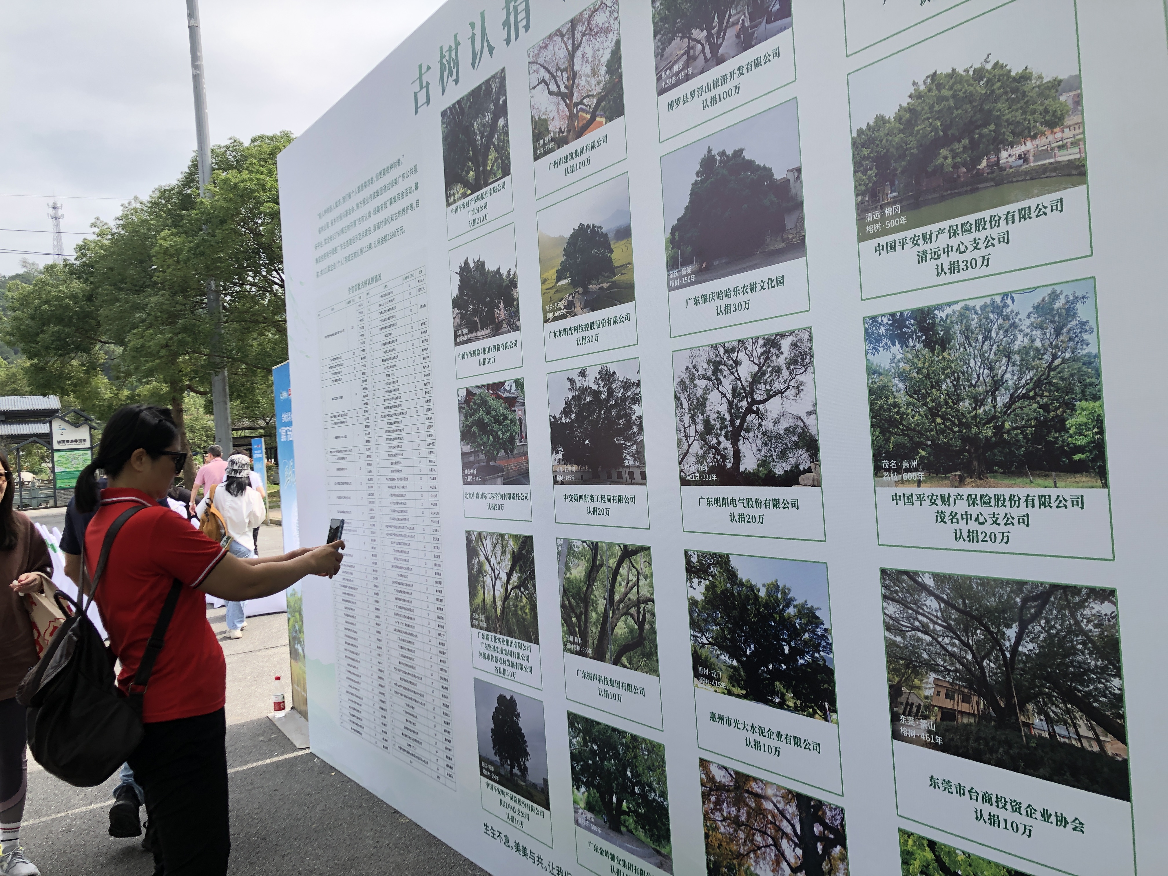 香港東莞社團總會、東莞市台商投資企業協會等首批逾100家企業和個人已經認捐古樹115株,認捐金額達1690萬元。廣東省林業局相關負責人表示,近年廣東大力推進古樹名木保護,包括建立「數字檔案」、實施視頻監控和和保護工程、搶救複壯、探索打造「古樹公園」和「古樹鄉村」等形式,更創新性推出「古樹認捐認養」模式,將古樹「搬」進手機,以最大限度、超便捷方式推進古樹「認領養護」在全省遍地開花。