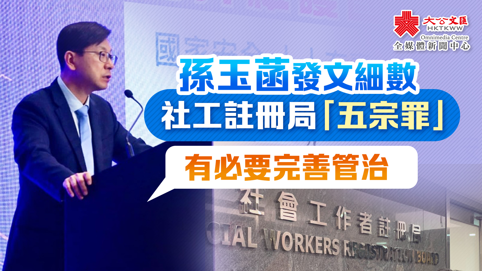 大公文匯全媒體報道,社工本是協助弱勢社群的專業人士,近年卻有個別「黃社工」以政治凌駕專業,更多次煽暴及煽動仇恨,有違社工的專業守則。勞工及福利局局長孫玉菡今日(10日)在社交平台發文細數社會工作者註冊局「五宗罪」,指社會工作者註冊局目前的行徑和決定,嚴重偏離《社會工作者註冊條例》的精神,置社會整體利益於不顧,亦損害社工的專業和公信力。他表示,有必要完善註冊局的管治,盡快讓社工專業重回正軌。