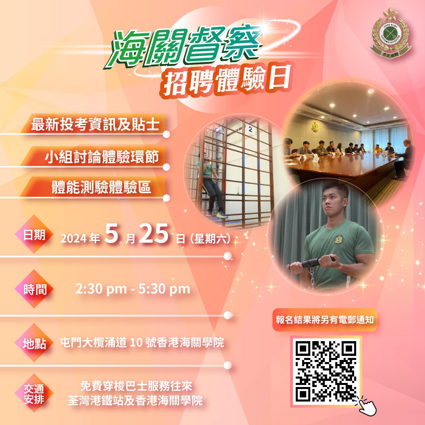大公文匯全媒體報道,香港海關將於明日(11日)舉辦海關督察招聘體驗日,由於反應熱烈,體驗日將於5月25日加開一場。