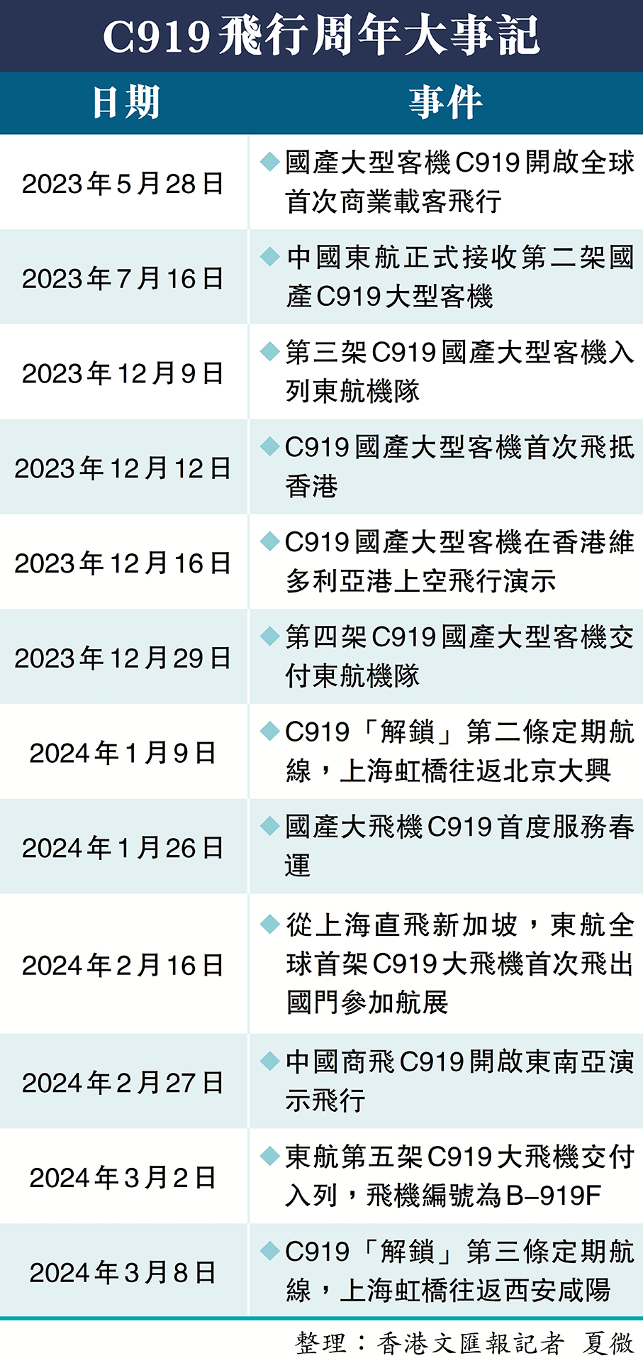 此外,在C919方面,佟宇早前有參與駕駛C919到港展飛,佟宇在訪問中談及,早前C919參與新加坡航展,是首次走出國門,參展者對C919關注程度很高,香港的國泰航空亦十分關注該機型。