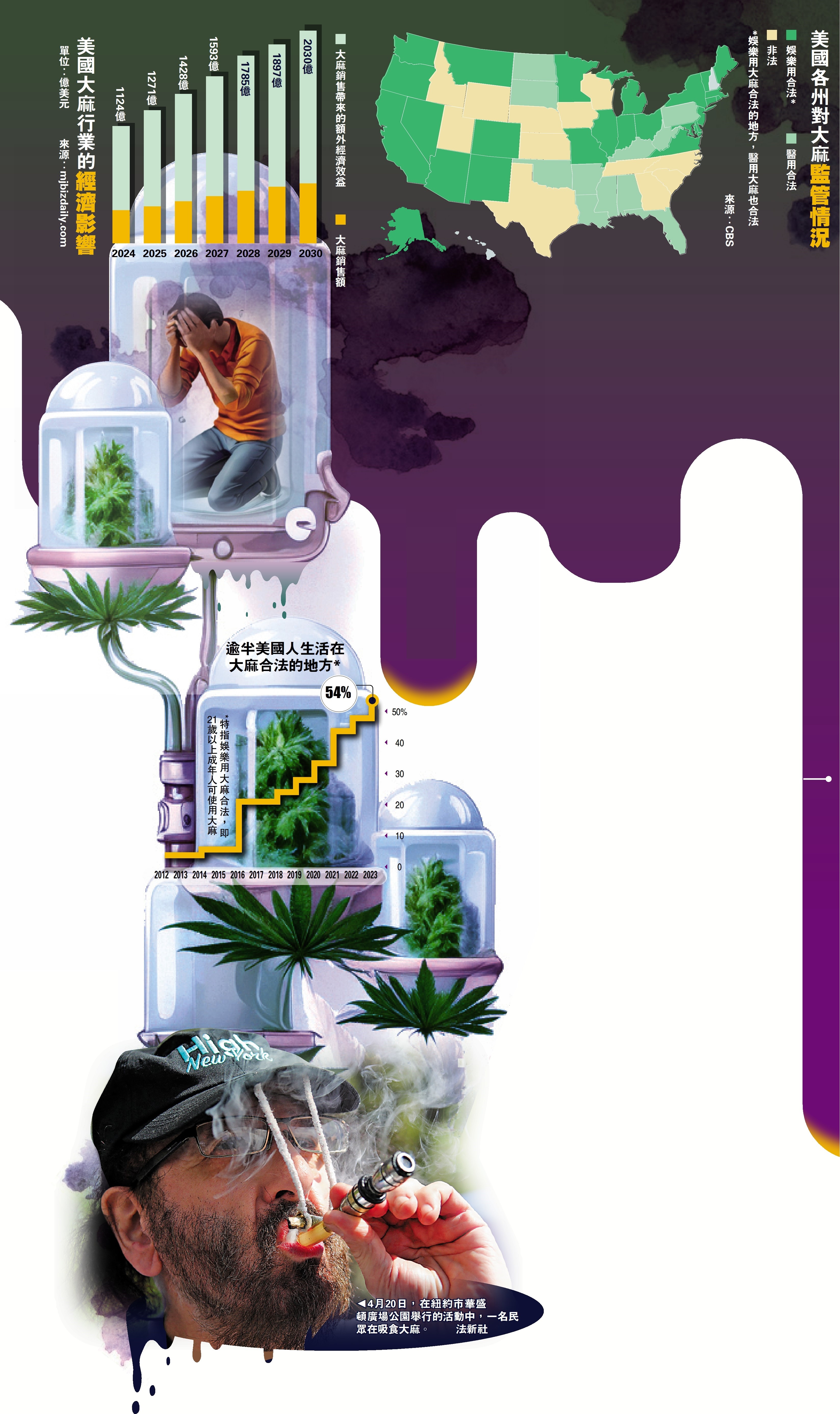 美國近年不斷放寬大麻管制,尤其是州政府層面。截至今年5月,全美已有38個州將醫用大麻合法化,當中有24個州更通過娛樂用大麻合法化的法案,即約佔全美的一半。