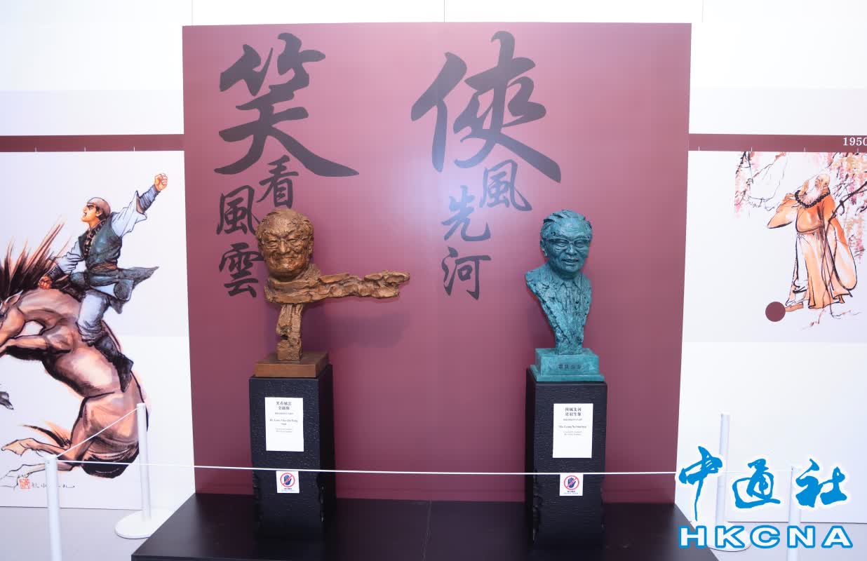 當天,開幕展還舉辦了金庸、梁羽生雕像的揭幕儀式,今年是兩位新派武俠小說家的百年誕辰;創作者陳建華親到現場分享心路故事。