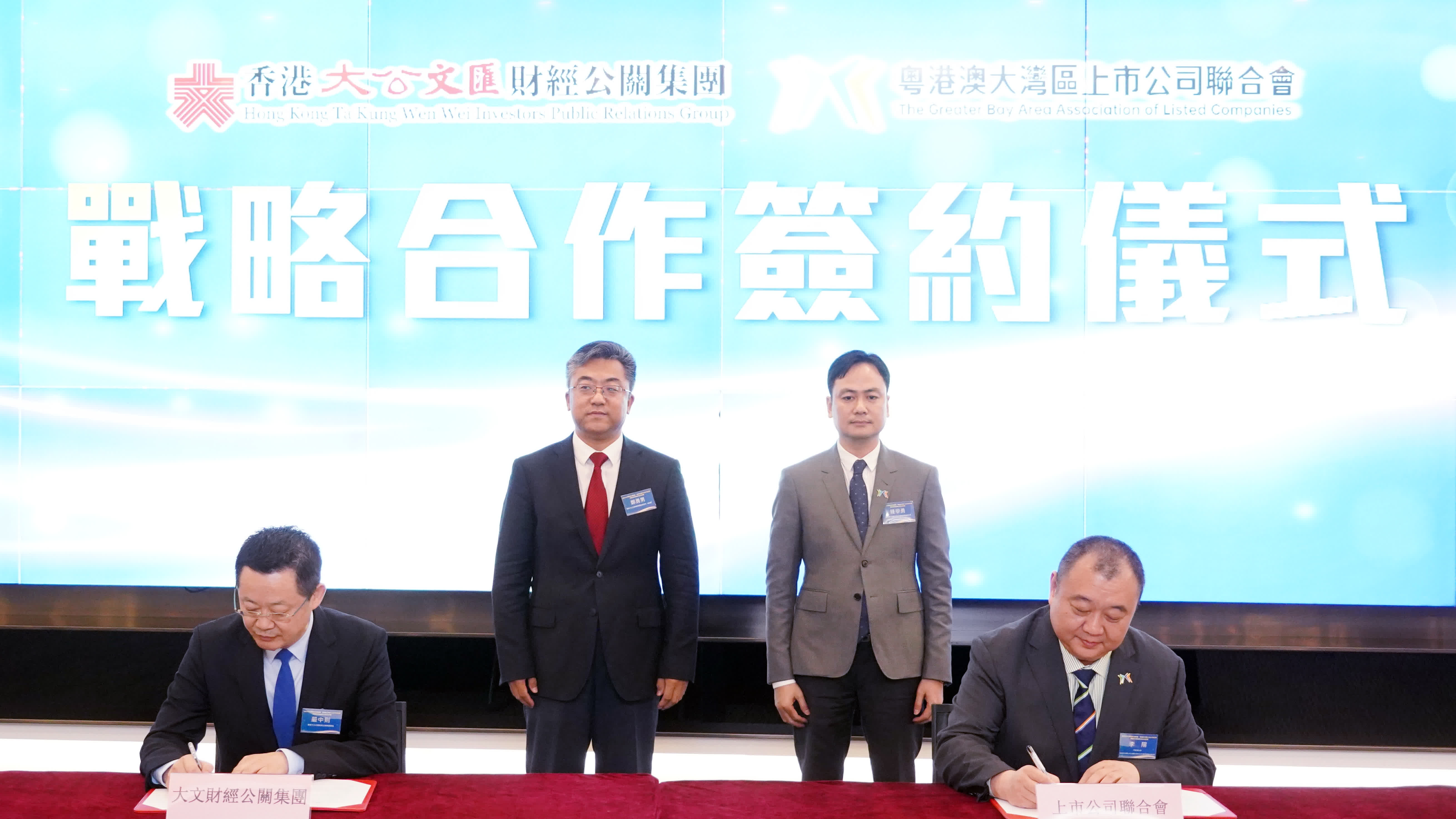 (香港文匯報 記者 馬翠媚)香港大公文匯財經公關集團和粵港澳大灣區上市公司聯合會共同簽署戰略合作協議,協議下是次雙方合作旨在共同開發新的市場機會,探索新的商業模式,為企業發展搭建綜合性平台,創造更多更好的發展機會,助力上市企業可持續高質量發展。粵港澳大灣區上市公司聯合會亦預告一系列即將舉行的綠色活動,包括將舉辦首屆大灣區上市公司綠色發展高峰論壇,明年亦計劃走進大灣區核心城市,每月在不同城市舉辦沙龍活動,以促進灣區產業聯動合作,為區域綠色經濟增值賦能。