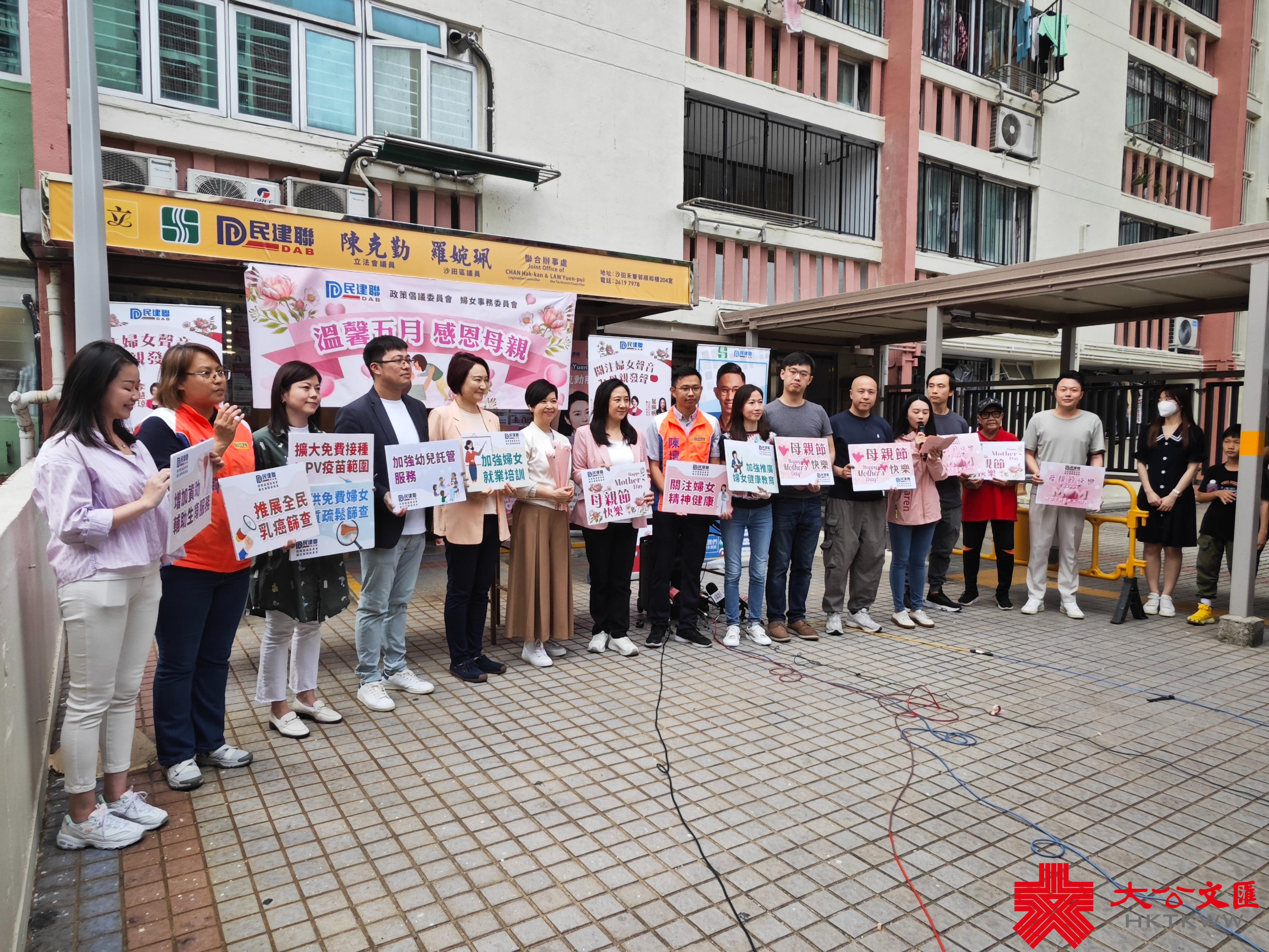 (大公文匯全媒體記者 王俊傑)民建聯政策倡議委員會及婦女事務委員會今午(12日)舉辦「溫馨五月 感恩母親」活動,其間房屋局局長何永賢聯同多名立法會議員和區議員到訪沙田禾輋邨的酒樓、商場及屋邨平台、派發數百份環保香皂花和心意卡,祝願天下媽媽「母親節快樂」。