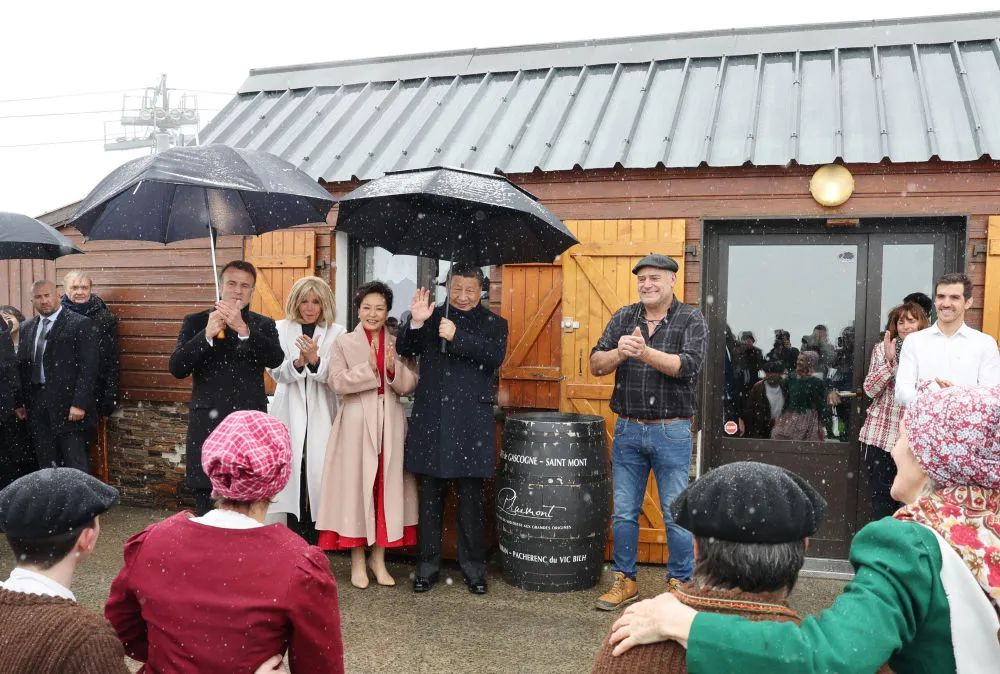馬克龍總統邀請習近平主席夫婦品嘗現切火腿片和當地生產的烈酒。既是表達好客之情,也是傳遞合作的熱盼。