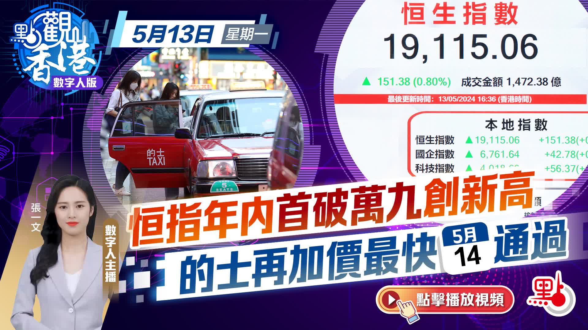 大公文匯全媒體報道,今天我們先來關注港股重上萬九關。港股今天三大指數齊漲,恒指重上萬九關,收報19115點,升151點,為恒指年內首次衝上萬九關,再創新高。科技指數收報4018點,升56點;國指收報6761點,升42點。大市成交額1,472億元。