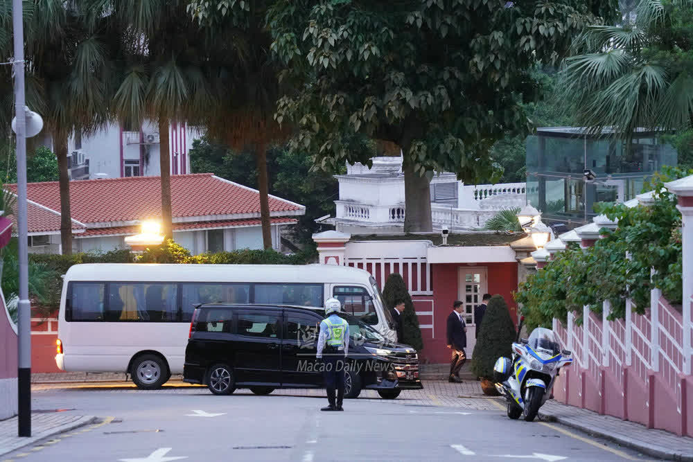 據澳門日報報道,中央港澳工作辦公室主任、國務院港澳事務辦公室主任夏寶龍今日(13日)抵達澳門,開展在澳門的一連七日考察調研行程。今晚約七時,夏寶龍及其車隊抵達禮賓府。禮賓府外,警員在場駐守及維持秩序。