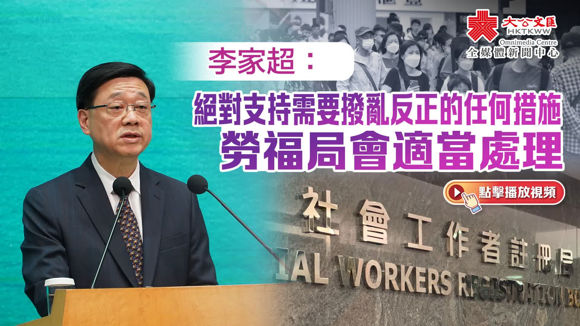 大公文匯全媒體報道,勞工及福利局局長孫玉菡日前發文細數社會工作者註冊局「五宗罪」,批社工註冊局行徑和決定置社會整體利益於不顧,亦損害社工的專業和公信力,強調有必要完善註冊局的管治。行政長官李家超今日(14日)出席行政會議前見傳媒,強調政府絕對支持任何需要撥亂反正的措施,如果出現任何需要矯正的不同錯誤或者系統上的不完善,「我都覺得係應該做嘅」。
