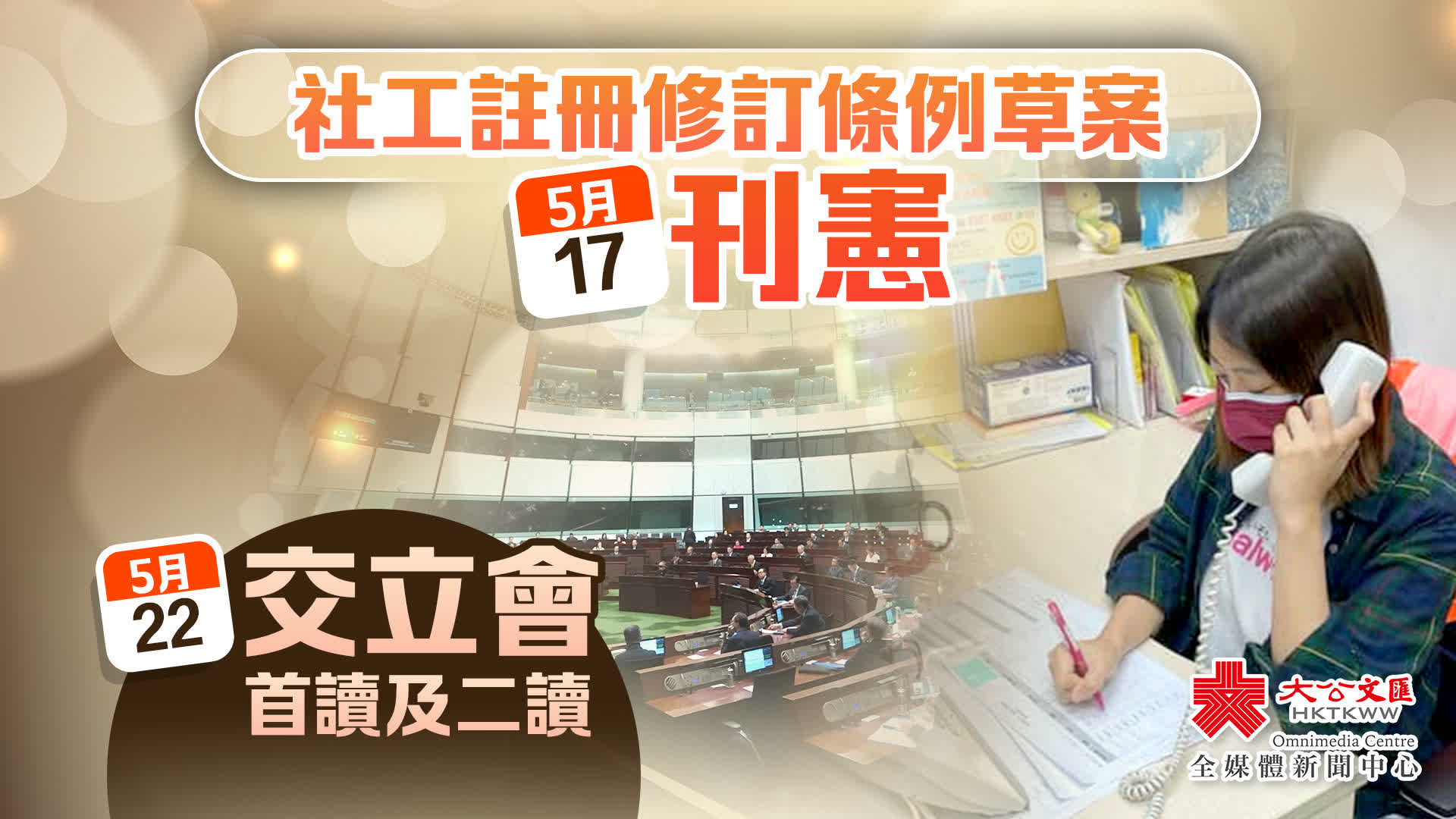 大公文匯全媒體報道,勞工及福利局發言人今日(14日)表示,《2024年社會工作者註冊(修訂)條例草案》(《條例草案》)將在本周五(17日)刊憲,並於5月22日提交立法會審議。