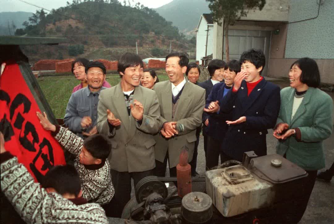 堆成小山的蠶繭預示着國家收購的豐收喜悅;池塘裏鴨群連綿起伏的叫聲催生了「訂單農業」;玉麟西瓜精品專賣店中,西瓜因被刀尖觸碰而發出的清脆開裂聲,宣告了農產品市場精品化的時代已經到來……從計劃經濟中鬆綁擁抱市場經濟,從量產、增產到追求精品,王小川拿着相機走在田間小路上,真切地感受到農村大地上農業、工業、醫療、生態、旅遊等方方面面的細微變化。位於東海之濱的溫嶺,工人們用電腦程序編織來自青藏高原的氂牛絨,生產出一件件「山海協作」的「致富衫」;在村口繪製黑板報、在村中祠堂科普衞生知識的江山市的鄉村醫生,成為中國第一批鄉村全科醫生;苕溪水由渾濁變清澈,生機勃勃的蘆葦叢取代了岸邊林立的污染企業……從20世紀80年代至今,浙江鄉村發展是王小川持續拍攝近40年的重要題材。他用影像講述了浙江率先從脫貧到實現全面小康,再到奔向共同富裕的足跡故事,凝固了時代奏響的優美旋律,留下了無數能喚醒集體回憶的動人畫面。