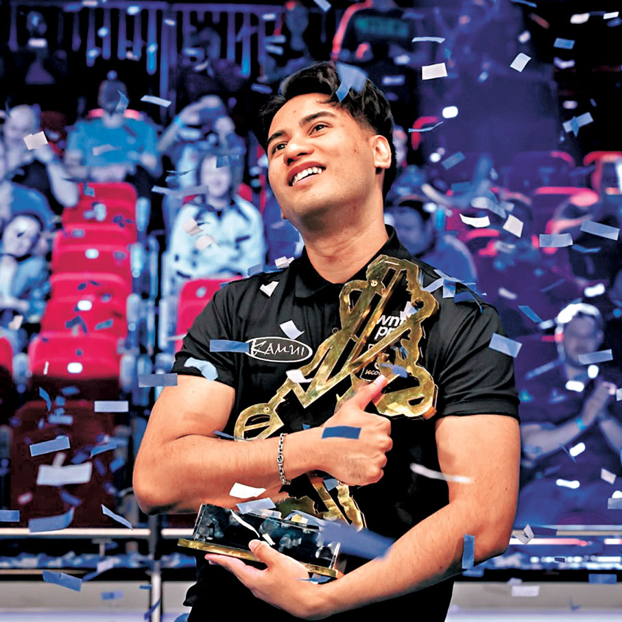 一連6天的英國公開賽共250名球手參加,這名菲裔港將在晉級過程擊退多位名將,包括前世界冠軍歌斯(Fedor Gorst)和費拿(Joshua Filler),最終在WNT世界9號球排名51的他以「黑馬」姿態捧起冠軍獎盃,寫下香港美式桌球歷史新一頁。自小喪父的他在接受現場大會訪問時,不忘將獎盃獻給亡父。