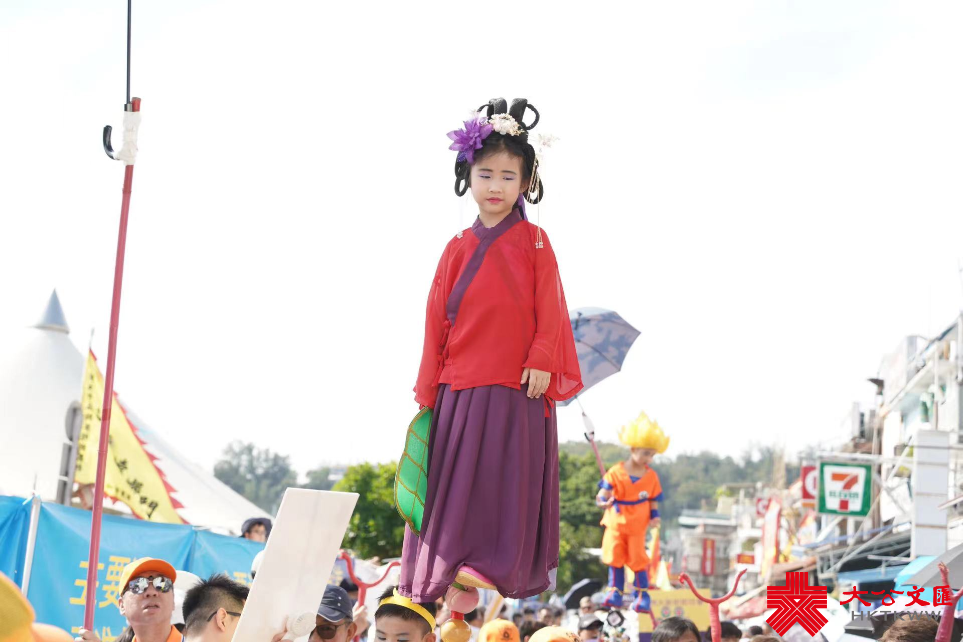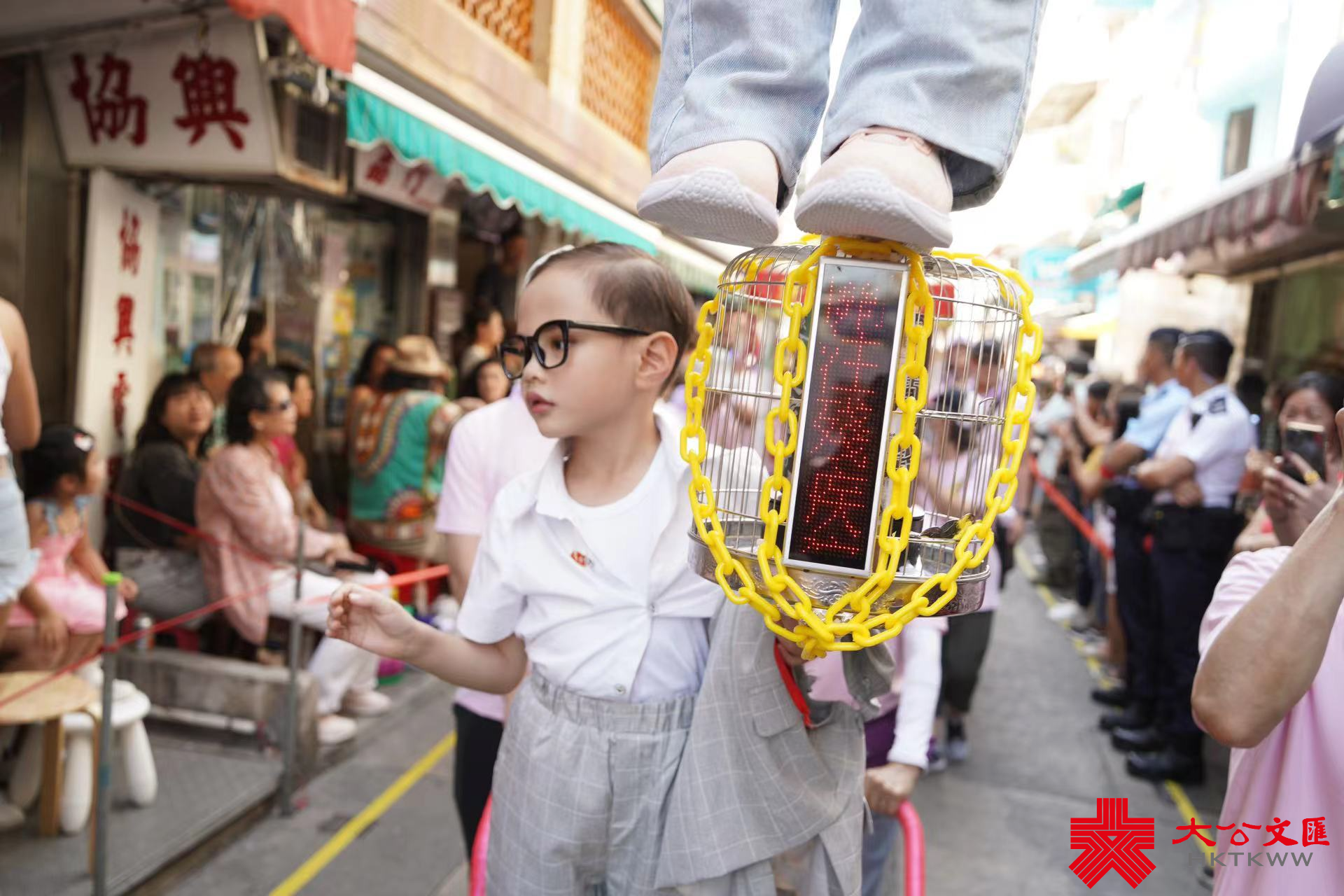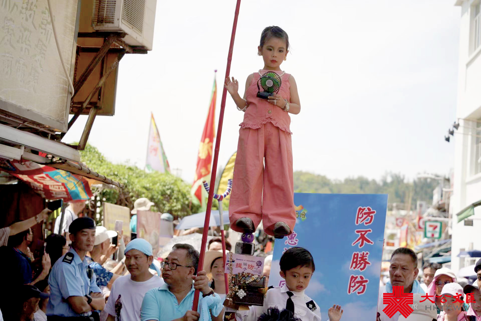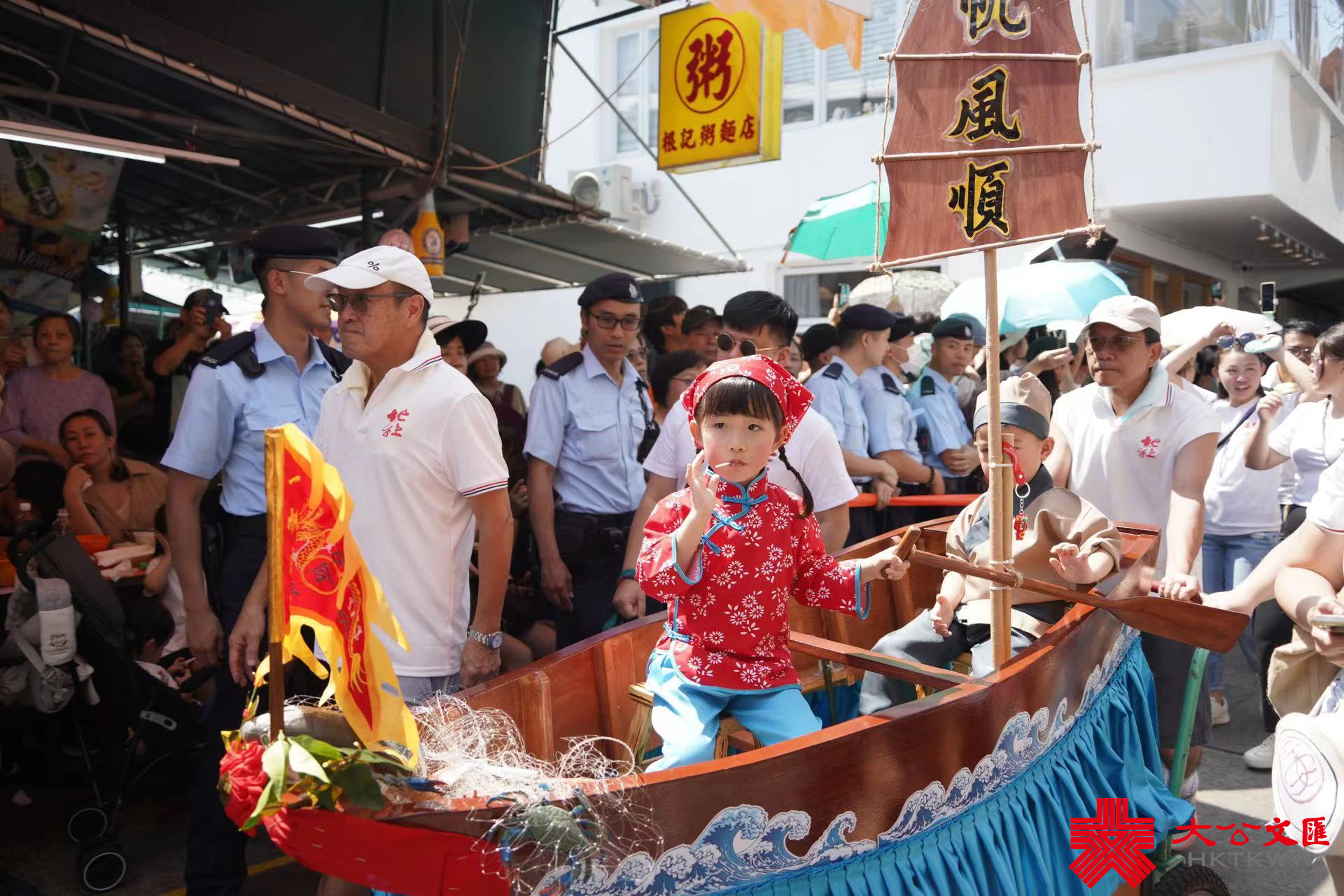 大公文匯全媒體報道,長洲年度盛事太平清醮今日(15日)舉行,其中的重頭戲之一飄色巡遊提早於下午1時半隆重上演。巡遊隊伍由麒麟領頭,從北帝廟遊樂場出發,一眾被稱為「色芯」小演員裝扮成各樣角色粉墨登場,神氣活現,沿途吸引大批市民「朝聖」。