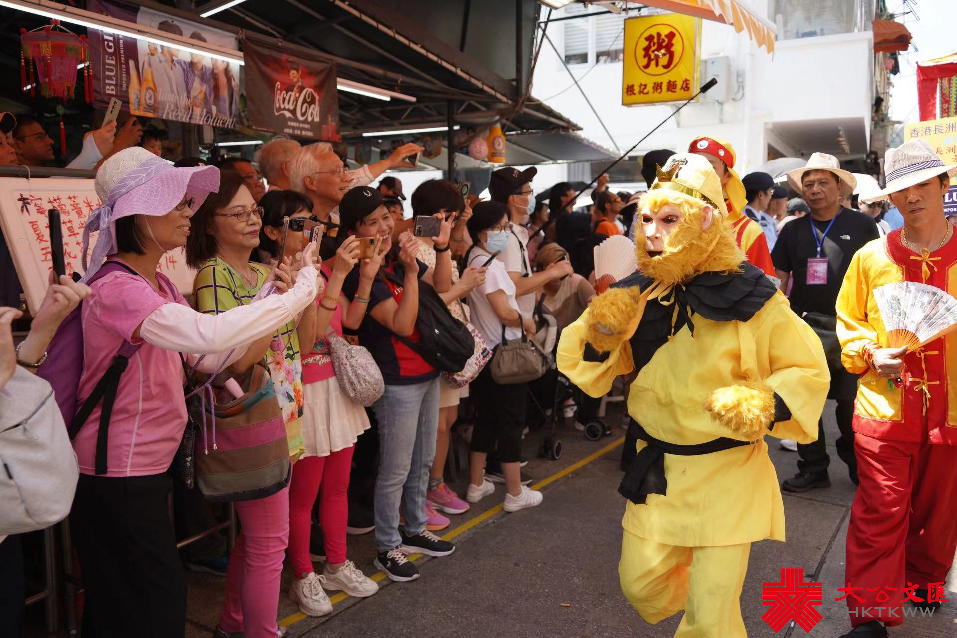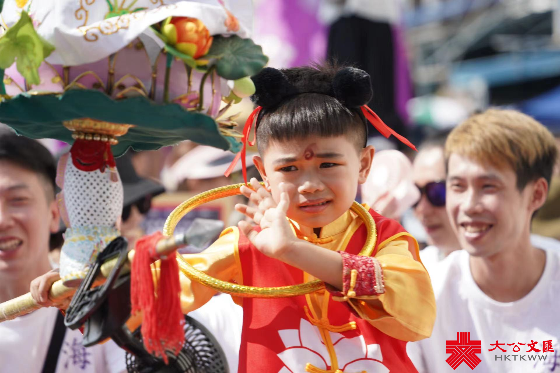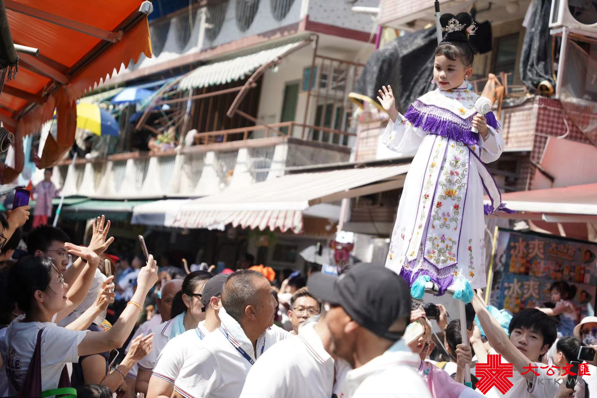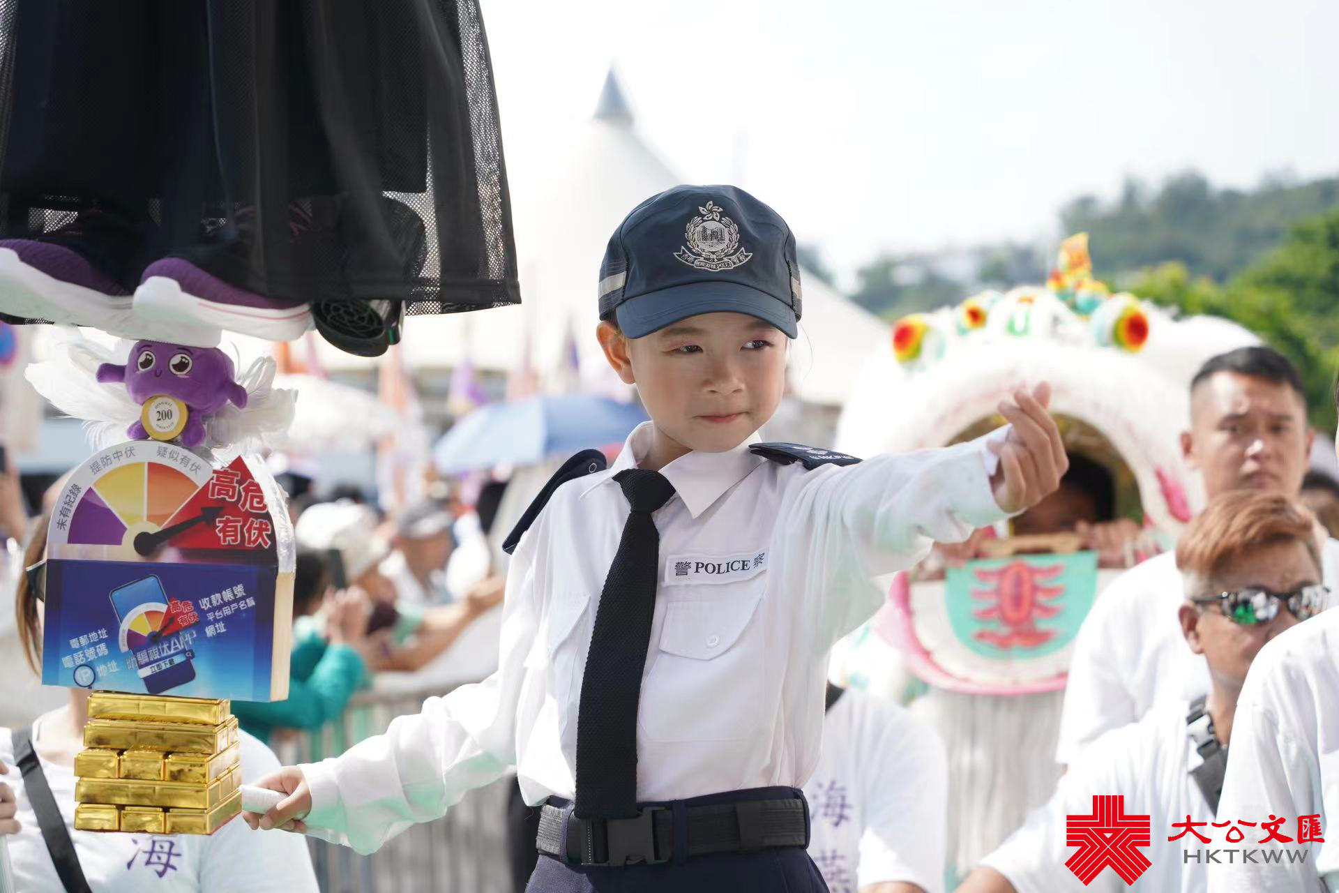 大公文匯全媒體報道,長洲年度盛事太平清醮今日(15日)舉行,其中的重頭戲之一飄色巡遊提早於下午1時半隆重上演。巡遊隊伍由麒麟領頭,從北帝廟遊樂場出發,一眾被稱為「色芯」小演員裝扮成各樣角色粉墨登場,神氣活現,沿途吸引大批市民「朝聖」。