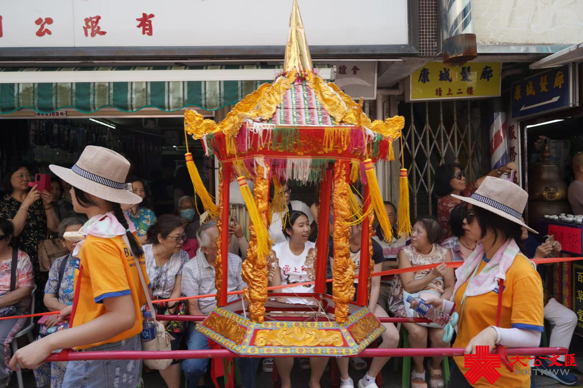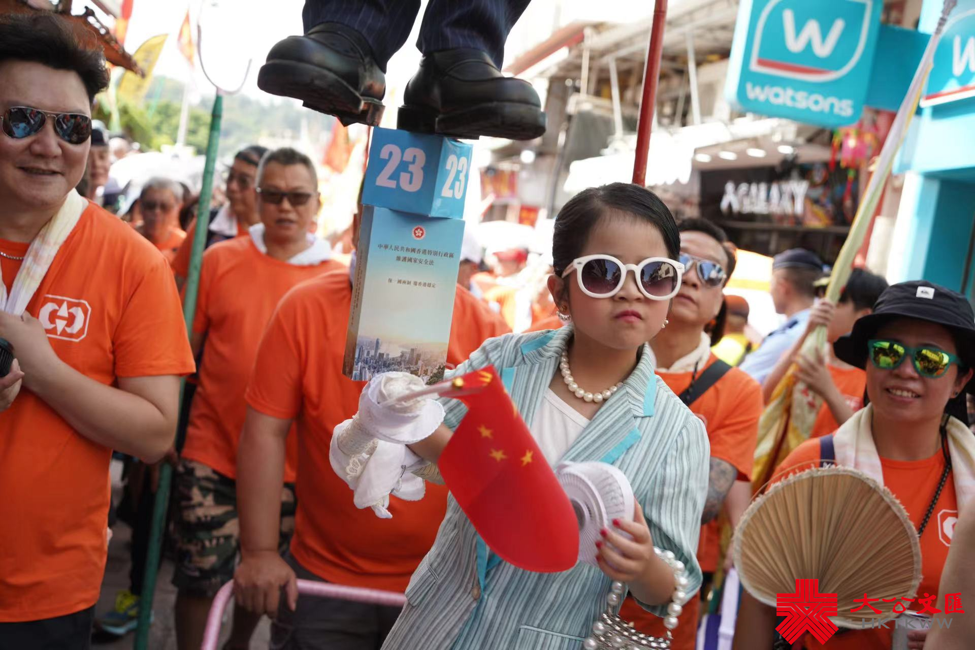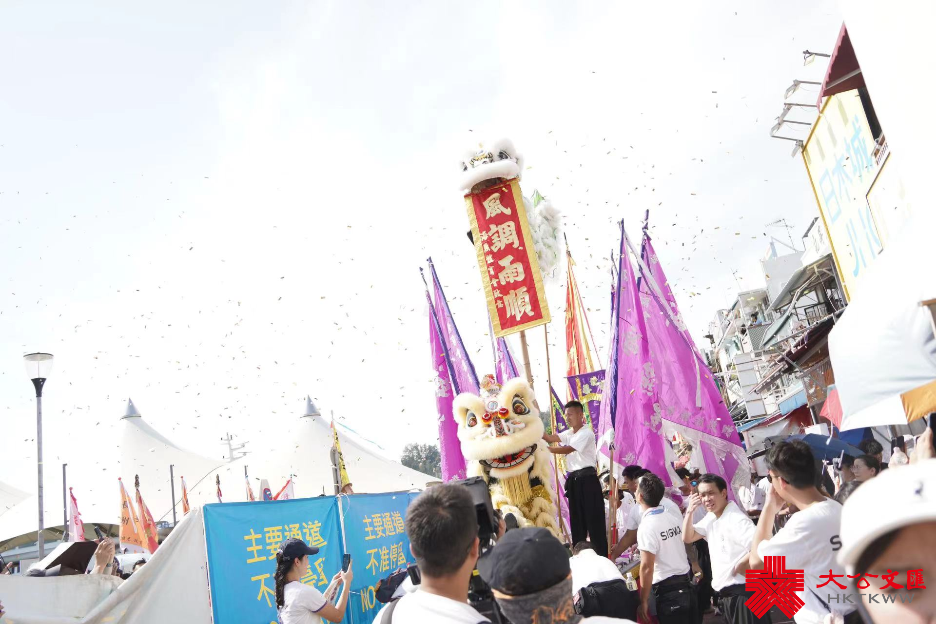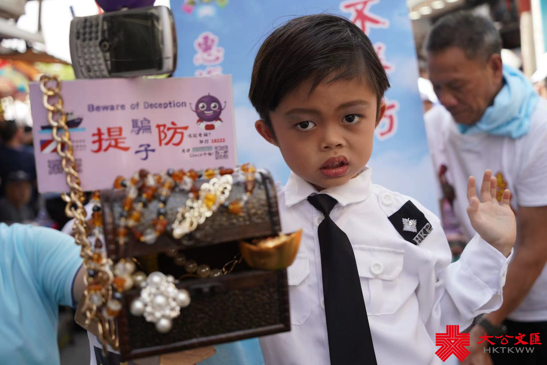 大公文匯全媒體報道,長洲年度盛事太平清醮今日(15日)舉行,其中的重頭戲之一飄色巡遊提早於下午1時半隆重上演。巡遊隊伍由麒麟領頭,從北帝廟遊樂場出發,一眾被稱為「色芯」小演員裝扮成各樣角色粉墨登場,神氣活現,沿途吸引大批市民「朝聖」。