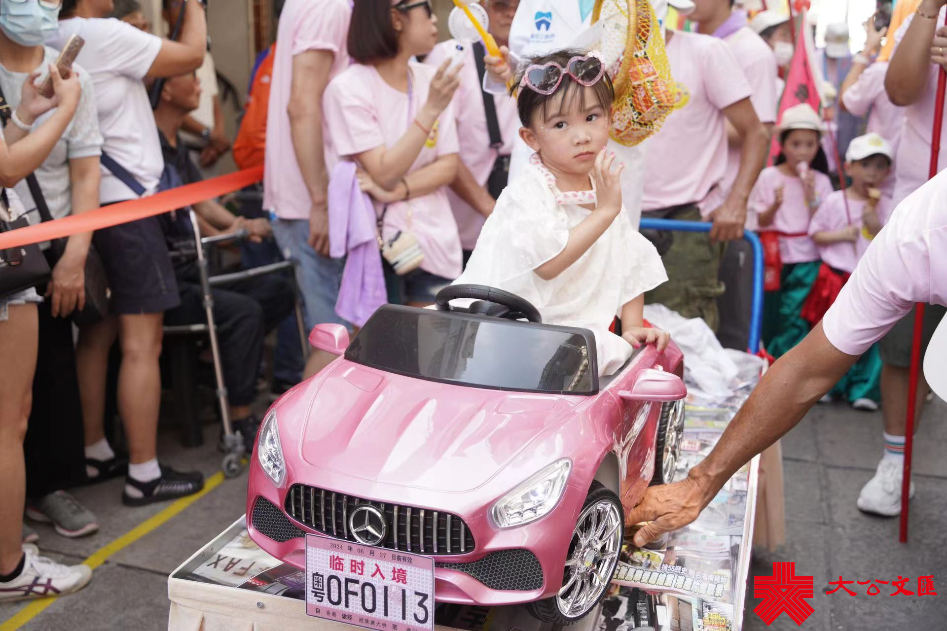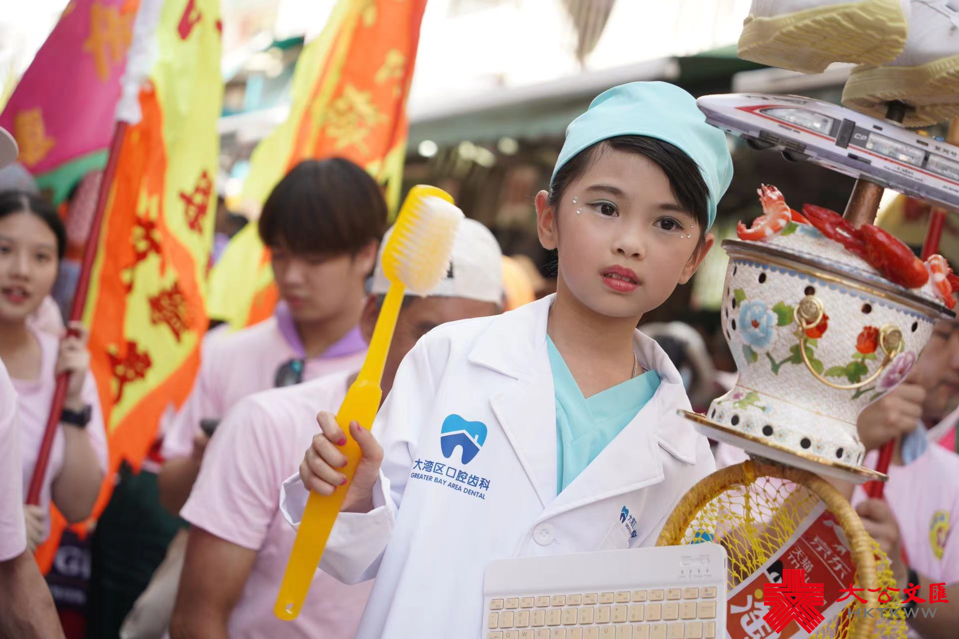 本港健兒在杭州亞運取得佳績,今次有小朋友扮演「女飛魚」何詩蓓及「劍神」張家朗。還有「色芯」扮演「平安包仙子」、《白日之下》中的記者,以及不同古今人物,十分熱鬧。另外,有小朋友裝扮成內地車輛維修員、大灣區齒科牙醫,以及一輛掛廣東牌照的粉色「豪車」駛入巡遊隊伍,疑似反映「港人北上」風潮,期望大家多多支持本地經濟。