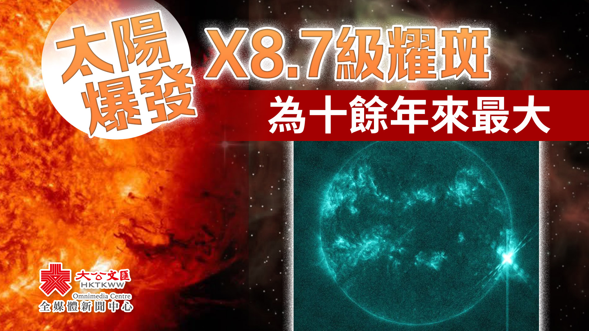 大公文匯全媒體報道,中國科學院空間環境研究預報中心今日(15日)發布太陽耀斑活動信息,北京時間2024年5月15日,太陽爆發第25太陽活動周最強耀斑,為X8.7級。據美聯社報道,這是自2005年以來太陽爆發最強的一個耀斑。