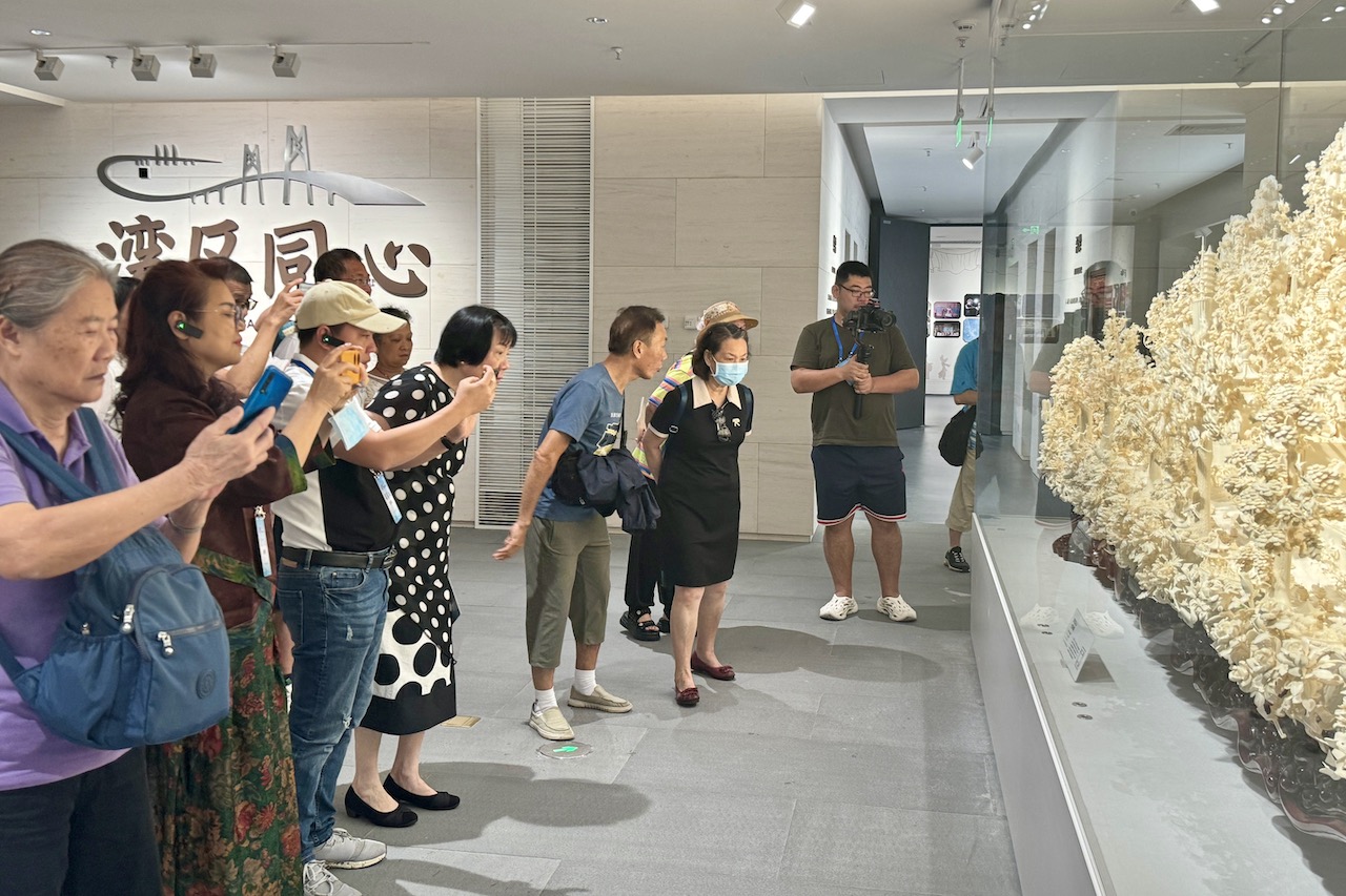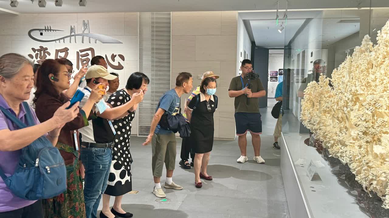 面對藝術中心內琳琅的藝術珍寶、嶺南工藝等,華媒代表們不住地拿起鏡頭拍照記錄。其中,匯聚大灣區11城200餘個建築物的大型骨雕作品《灣區同心》尤具視覺衝擊力,引得大家紛紛湊近辨認其中細節,雕得瑩白精緻的廣州塔、紫荊花廣場等地標被一一認出。呂沢秋認為,白鵝潭集中呈現了灣區大量文化藝術成果,將為人們認識粵港澳提供一個嶄新的窗口,向世界展示大灣區經濟領域之外的文化面貌。她還希望,將來能有越來越多的港澳元素加入其中,展現愈發深度融合的灣區文化。