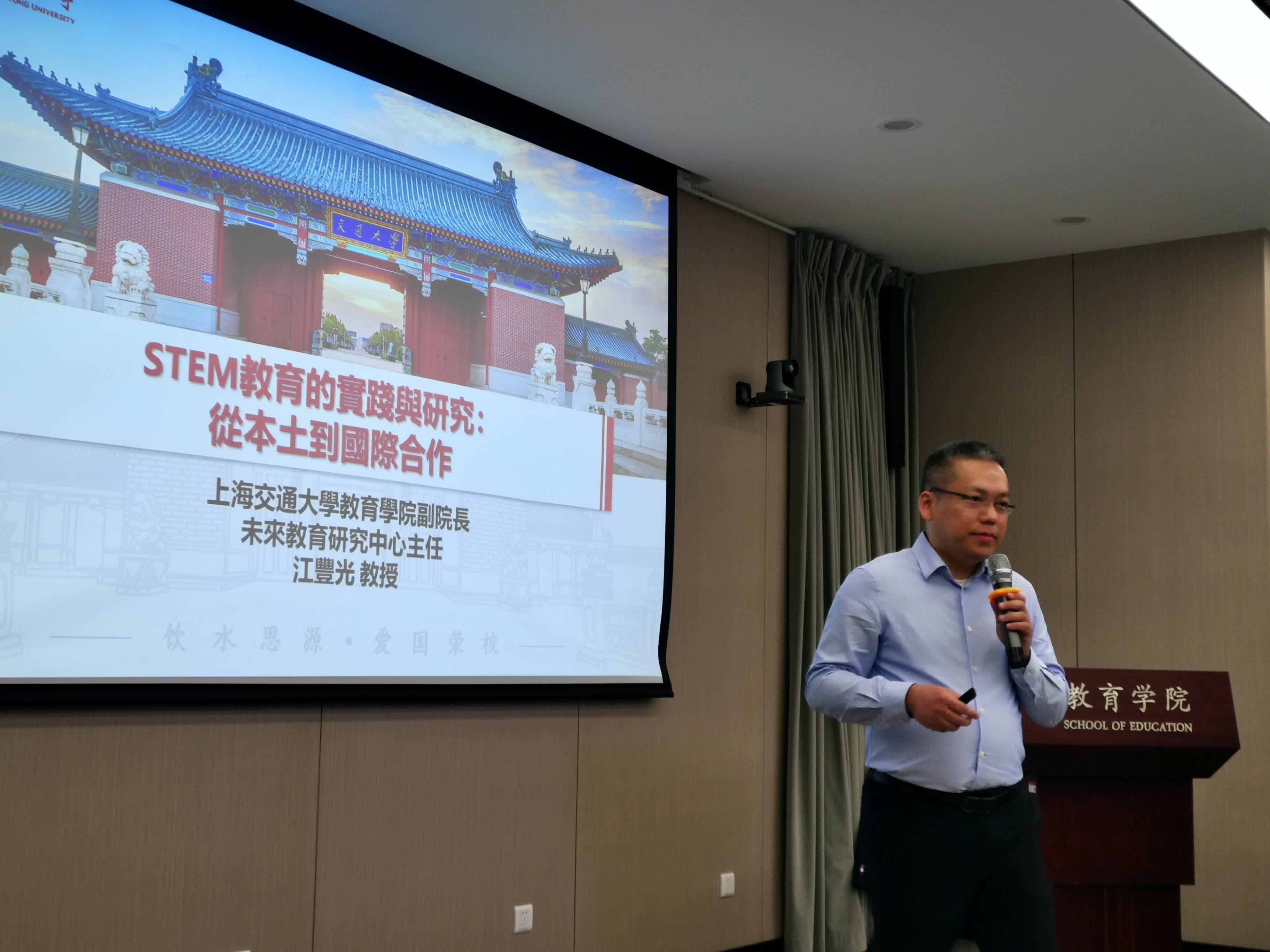 研習團開課禮今日早上於上海交通大學陳瑞球樓舉行,聯盟副主席伍煥杰致辭表示,聯盟很榮幸能與上海交通大學教育學院合作,介紹STEAM教育從本土到國際合作、STEAM教育在工程設計思維的應用、以及跨學科主題的實踐。「如此機會實在難能可貴,因香港中小學較少以工程知識為主導推動STEAM教育,而且『讀萬卷書不如行萬里路』,是次教師培訓研習團必定能為香港教師提供更多角度,探索STEAM教育各種組合的可能性,有助培訓香港中小學STEAM教育的教學人才。」 伍煥杰誠盼能繼續與上海交通大學教育學院合作,增加滬港兩地教育界交流。