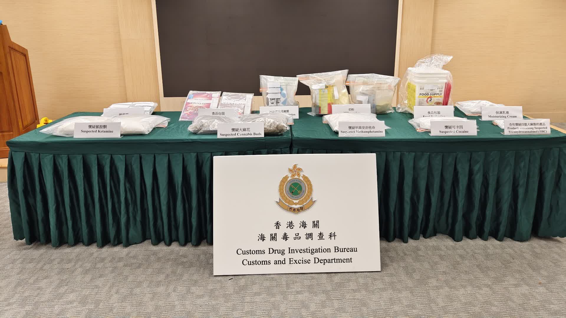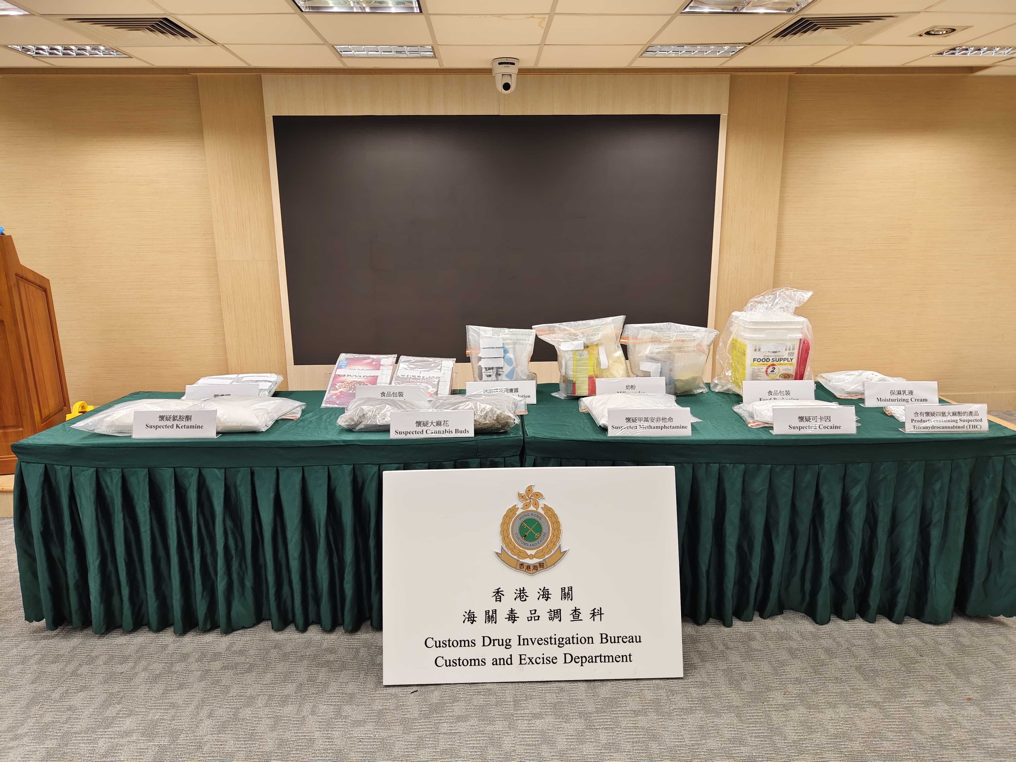 另一宗案件中,海關昨日(16日)在葵涌採取監控派遞行動,在一名47歲外籍男子所收取的包裹內檢獲約3.5公斤懷疑氯胺酮,並隨即以涉嫌販運危險藥物的罪名將他拘捕。隨後,海關人員到其住所搜查,在單位內發現一批懷疑用作重新包裝和分銷毒品的工具。案件仍在調查中,不排除會有更多人被捕。