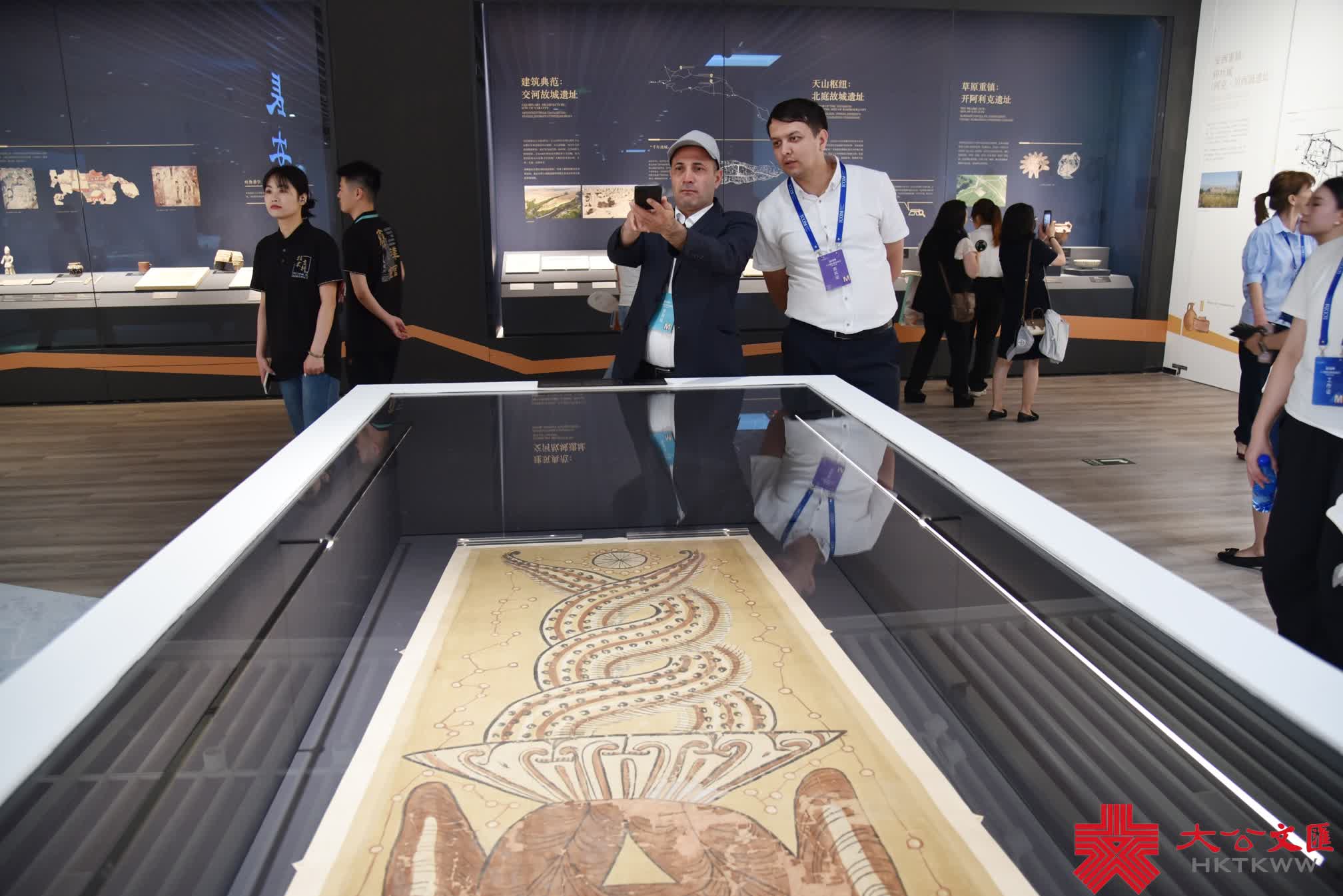 與此同時,展覽亦注重展示申遺歷程。據悉,申遺工作是由聯合國教科文組織牽頭,中國和中亞各國在申遺過程中做出了不懈努力。隨着申遺成功,從2014至2024年十年間,中國和中亞對遺址進行保護、研究和利用,中國考古學者在中亞地區聯合考古和保護成果,以及2014年申遺成功以來與絲路文化交流相關的重點展覽等當代人類對絲路所做的貢獻,都是展覽的重要組成部分。