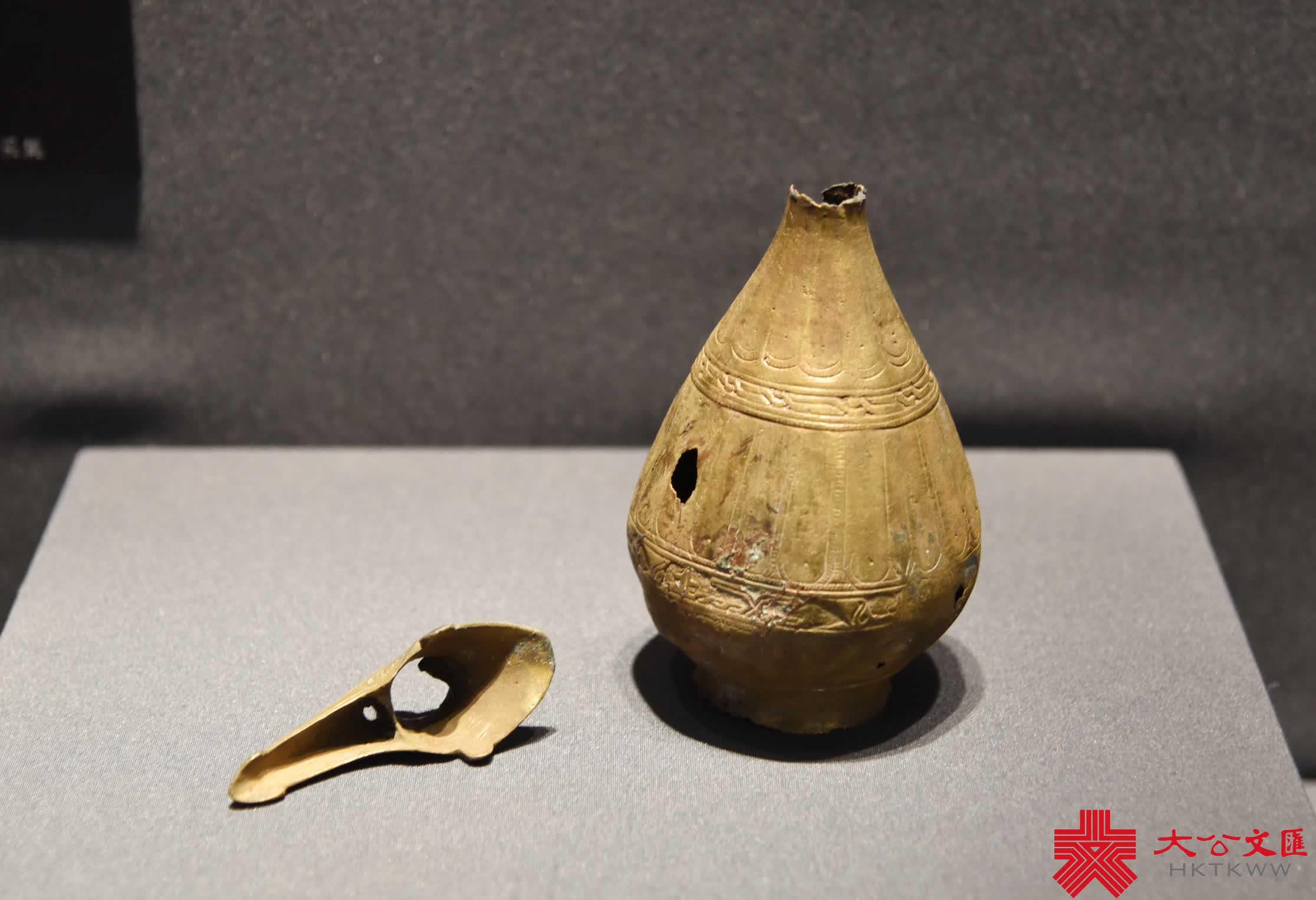 記者在現場看到,來自哈薩克斯坦的展品共計13件(組),主要包括公元前5至公元前4世紀伊塞克土墩遺址出土的金銀飾品。與陝西地區出土的金屬牌飾對照,這些文物反映了絲綢之路早期的草原文化。而來自開阿利克遺址和塔爾加爾遺址出土的釉陶碗,以及帶祭壇的陶罐等,則是中亞地區絲綢之路商貿和宗教文化的代表。