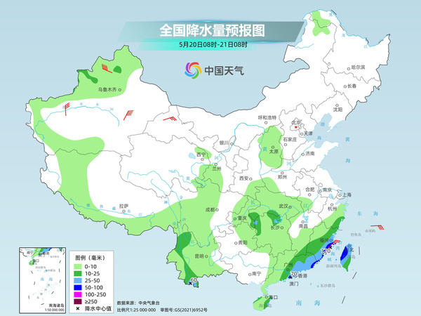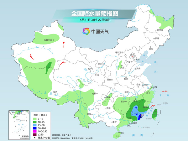 明天,廣東中東部、福建南部和東部、浙江東南部、台灣島、湖南北部、雲南西北部和南部、新疆伊犁河谷等地部分地區有中到大雨,其中,福建東南部、廣東東南部沿海、台灣島中北部等地部分地區有暴雨或大暴雨。