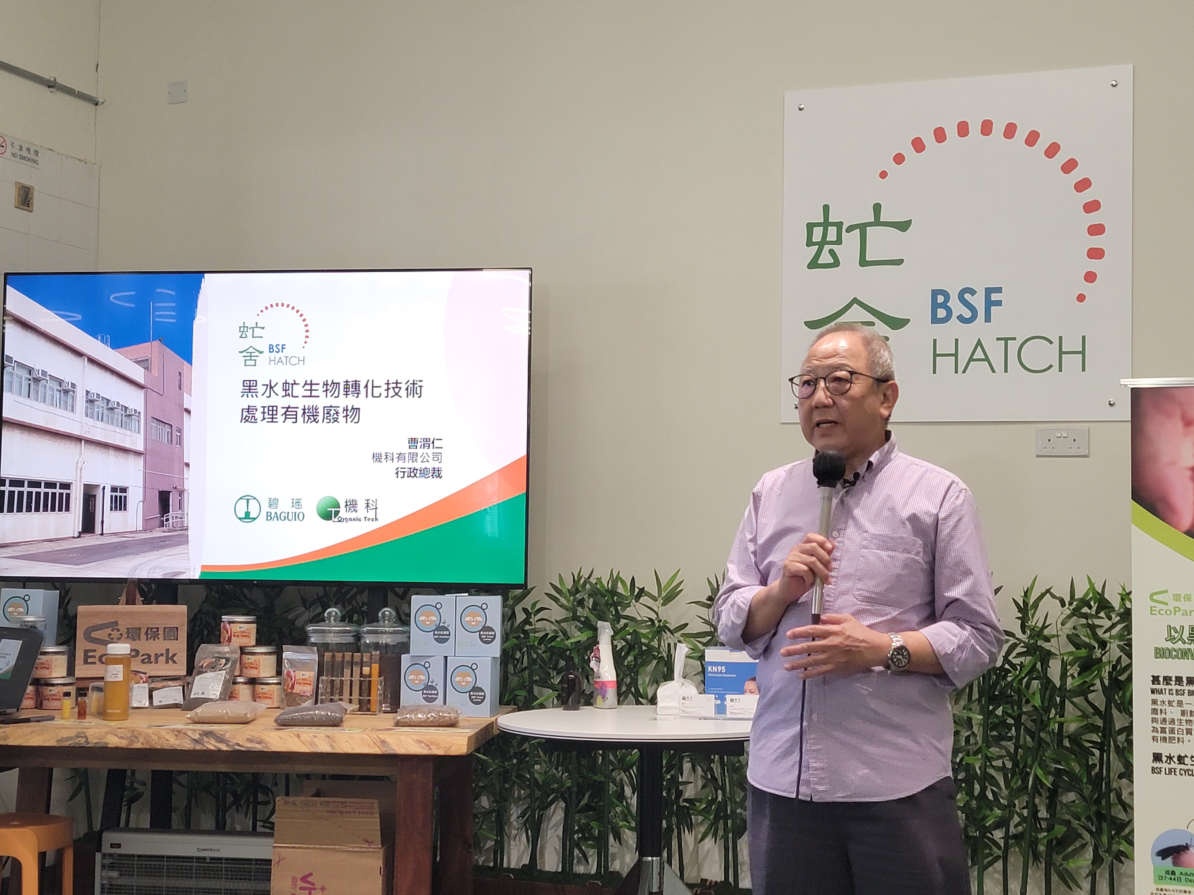 虻舍由碧瑤及庫基科技合營的公司——機科有限公司負責營運,擁有全港首個以生物轉化技術、工業式規模處理本地有機廢料的大型回收設施,亦是香港初創生物科技回收項目。「我的初心就是幫助香港處理有機廢棄物,為香港的環保事業出一份力」,機科有限公司行政總裁曹渭仁如是說。