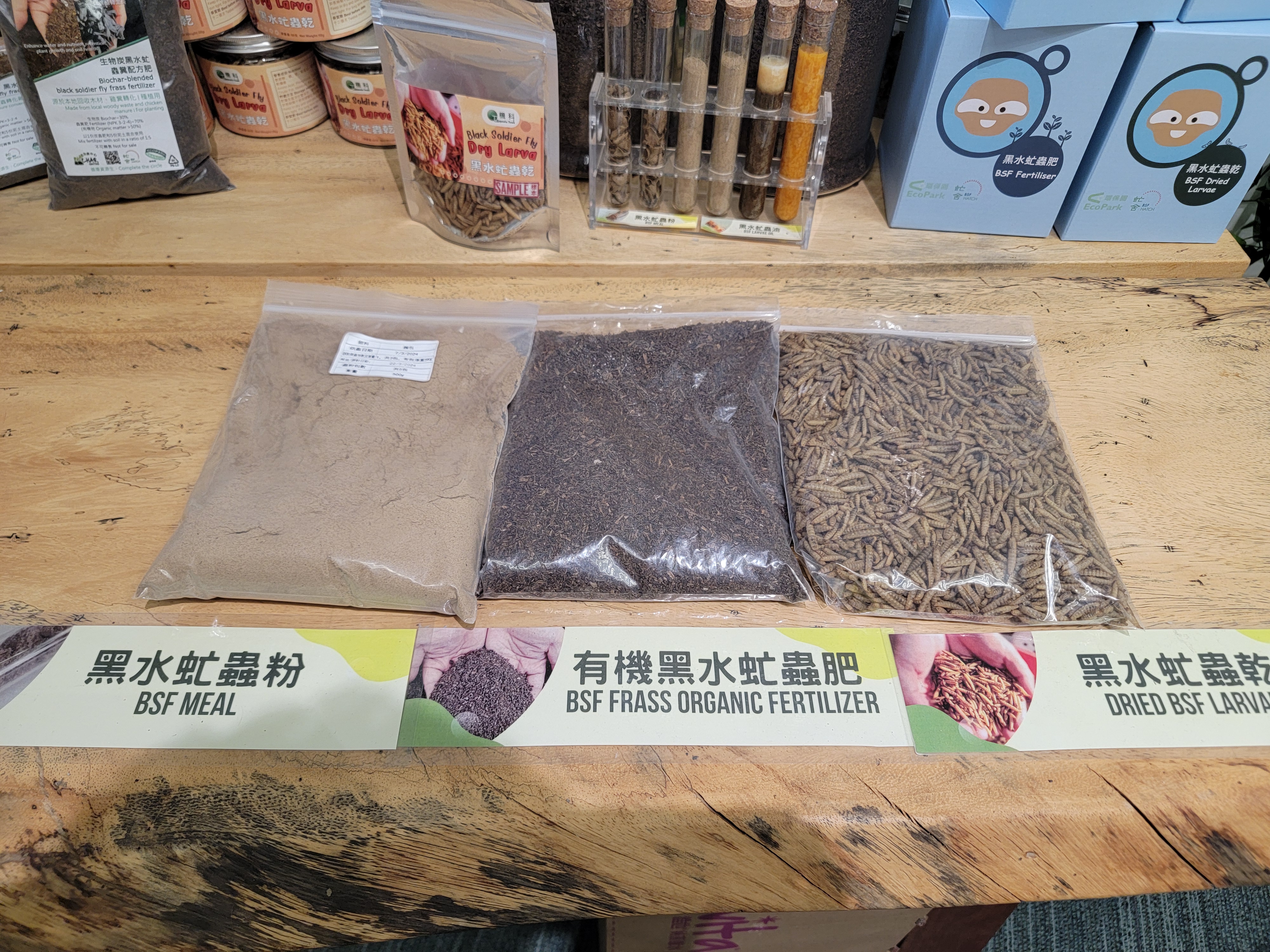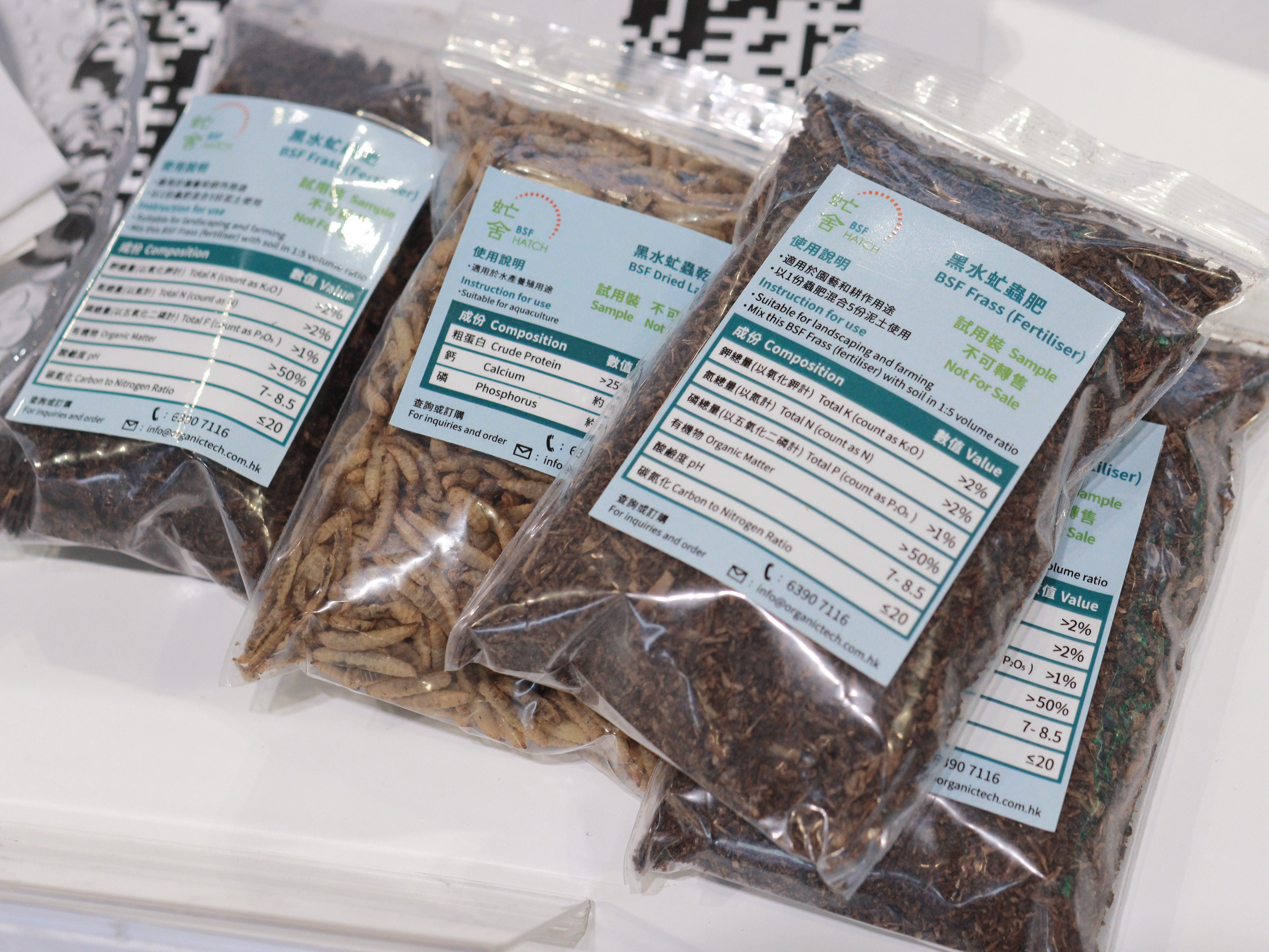 雖然,有機廢物經過虻舍處理後產出的物料仍在開拓階段,但目前通過雞糞轉化後的物料,已被驗證可用於本地漁農業餵飼、園藝業種植及護膚品製造等用途。所製成的產品,對人類、動物乃至環境都安全無害,不會產生二次污染。