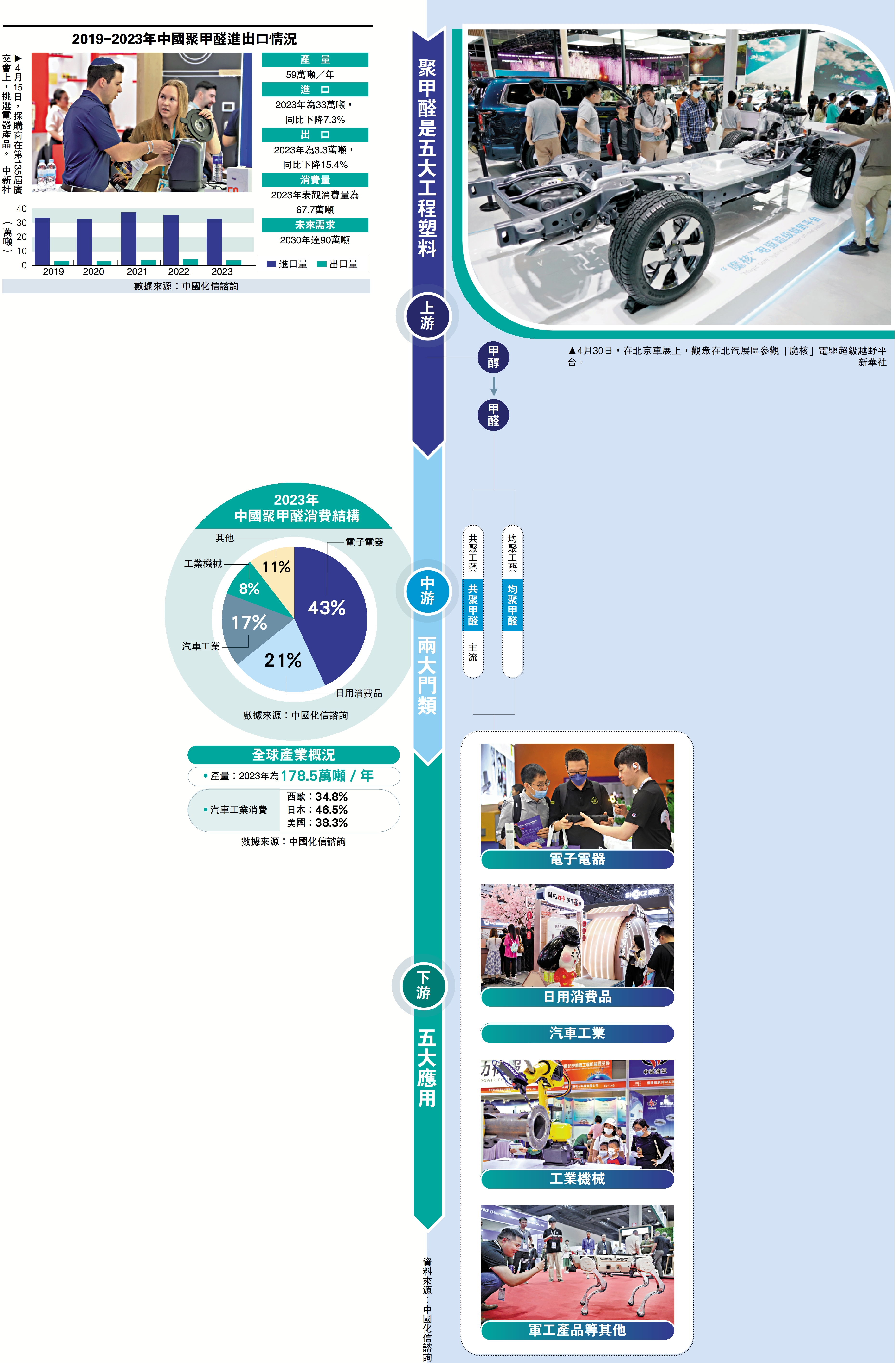 (大公報記者 馬靜 北京報道)中國商務部19日發布公告,宣布對原產於歐盟、美國、日本和台灣地區的進口共聚聚甲醛啟動反傾銷立案調查,預計調查需時一年。聚甲醛產品按結構可分為兩大類,均聚聚甲醛、共聚聚甲醛。共聚聚甲醛由甲醛合成,可直接用於或經改性後用於汽車配件、電子電器、工業機械、日常用品等領域。有分析指,聚甲醛應用市場以汽車工業最大,去年佔比達31%。