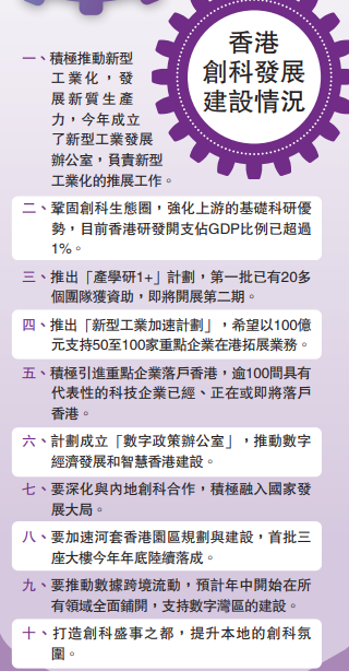 此外,孫東認為本港的創科發展亦要繼續發揮「背靠祖國、聯通世界」的優勢,進一步思考和探索香港如何服務於國家整體戰略,尤其在「引進來、走出去」方面。他舉例說,在「一帶一路」建設、國家建立全球化產業體系的過程中,香港應積極承擔樞紐作用。