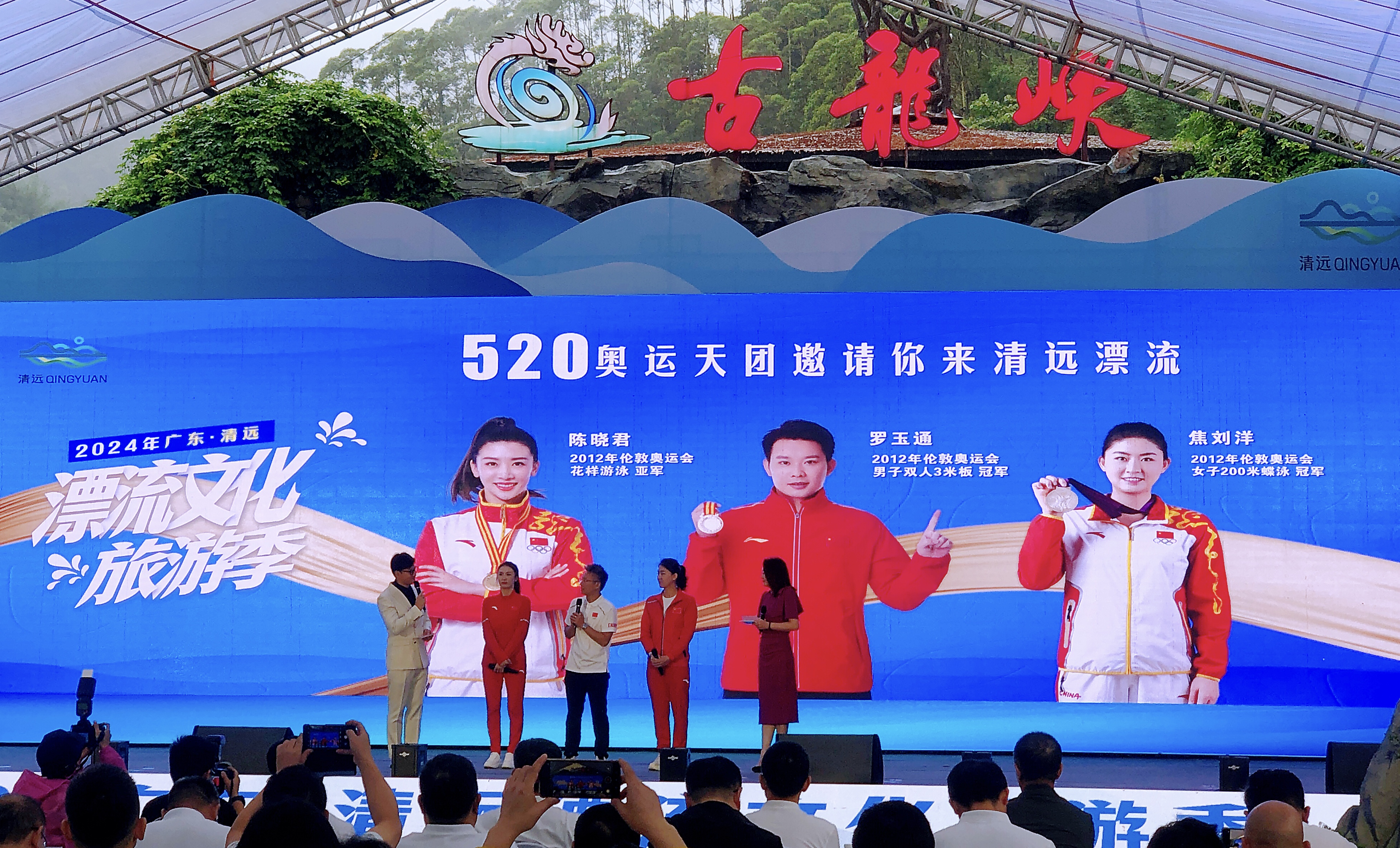 今年正值「體育大年」,粵港澳舉辦15屆全運會的腳步越來越近,多項國際體育賽事輪番上場。為進一步提高體育競技氛圍,由奧運冠軍焦劉洋、羅玉通和奧運亞軍陳曉君組成的「奧運天團」,作為「廣東·清遠漂流文化旅遊季」代言人現身古龍峽國際漂流賽場為賽事助威,並親自「下水」挑戰世界最長、落差最大的自然水域漂流賽道。