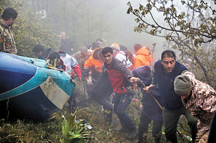 伊朗塔斯尼姆通訊社報道,萊希一行9人當天乘坐的直升機在從阿塞拜疆飛回伊朗途中失事,現場天氣惡劣、地勢複雜,阻礙搜救工作。伊朗紅新月會負責人周一稱,事故直升機已被發現,搜救隊在現場一帶搜索,確認沒有人員生還,其後表示已發現機上人員遺體。伊朗官方伊斯蘭共和國通訊社報道,直升機出事原因為「技術故障」。