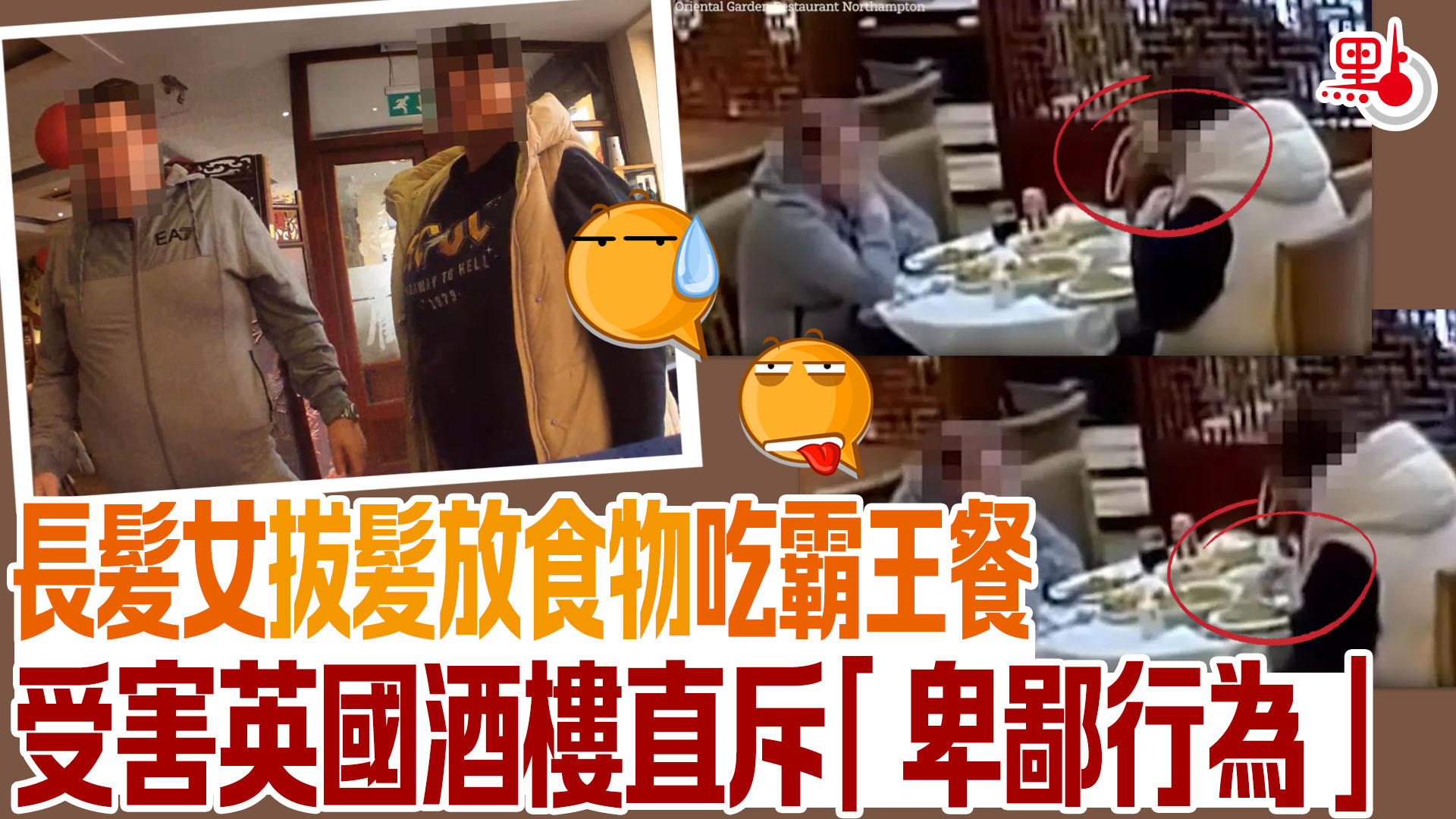 大公文匯全媒體報道,食客自導自演吃「霸王餐」!一間位於英國北安普頓(Northampton)的東方城大酒樓(Oriental Garden Restaurant Northampton),近日在網上平台上載圖片和閉路電視紀錄,表示有日傍晚有一對男女光顧,點了前菜和主菜,然後投訴食物中有頭髮。店方翻查閉路電視片段,顯示該名女子拔出自己的頭髮,並將頭髮放入食物中,直斥「這絕對是卑鄙的行為」。