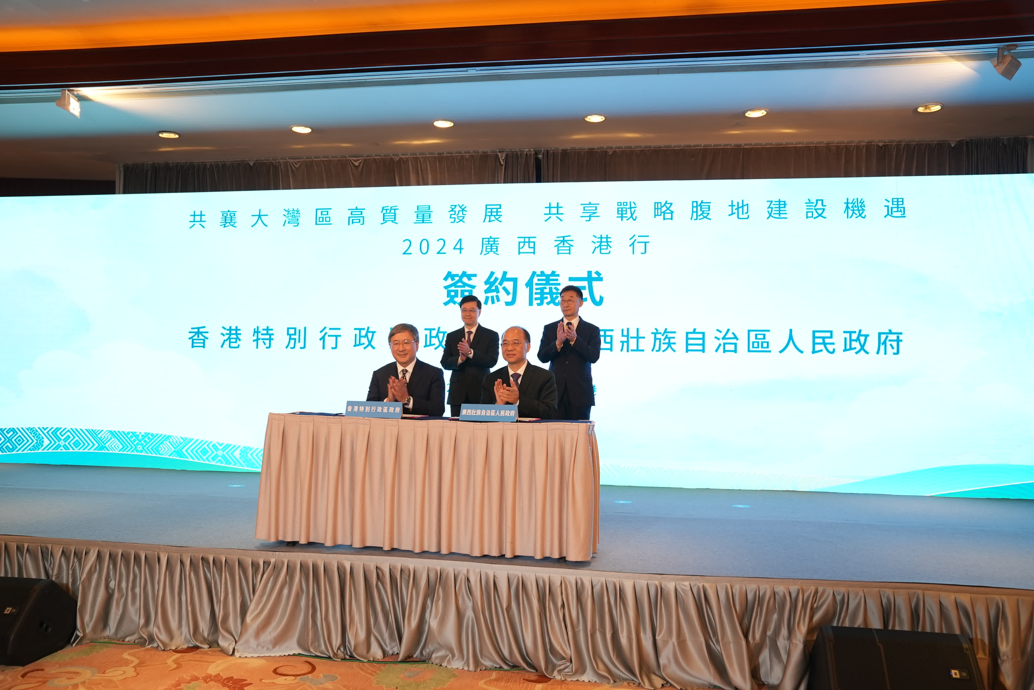 會議當天簽約協議、項目38個,其中,廣西壯族自治區人民政府與香港特別行政區政府簽署全方位合作意向書,桂港政府部門就金融、城市建設、文化旅遊、交通運輸、貿易簽約協議6個,桂港投資合作項目26個,合同總投資額484.78億元。