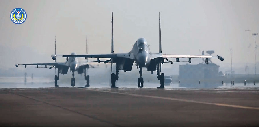 東部戰區空軍出動數十架次戰機成體系實施環台島戰巡、繞外島巡航。抵達任務空域後,各型戰機依託聯合情報支撐,靈活採取各類戰術動作,抵近台島周邊戰巡。在陸軍和火箭軍的支援掩護下,多機型編組滿掛實彈,飛赴預定空域建立多個打擊陣位,協同驅護艦、導彈快艇模擬打擊「敵」高價值軍事目標和偵巡艦機。