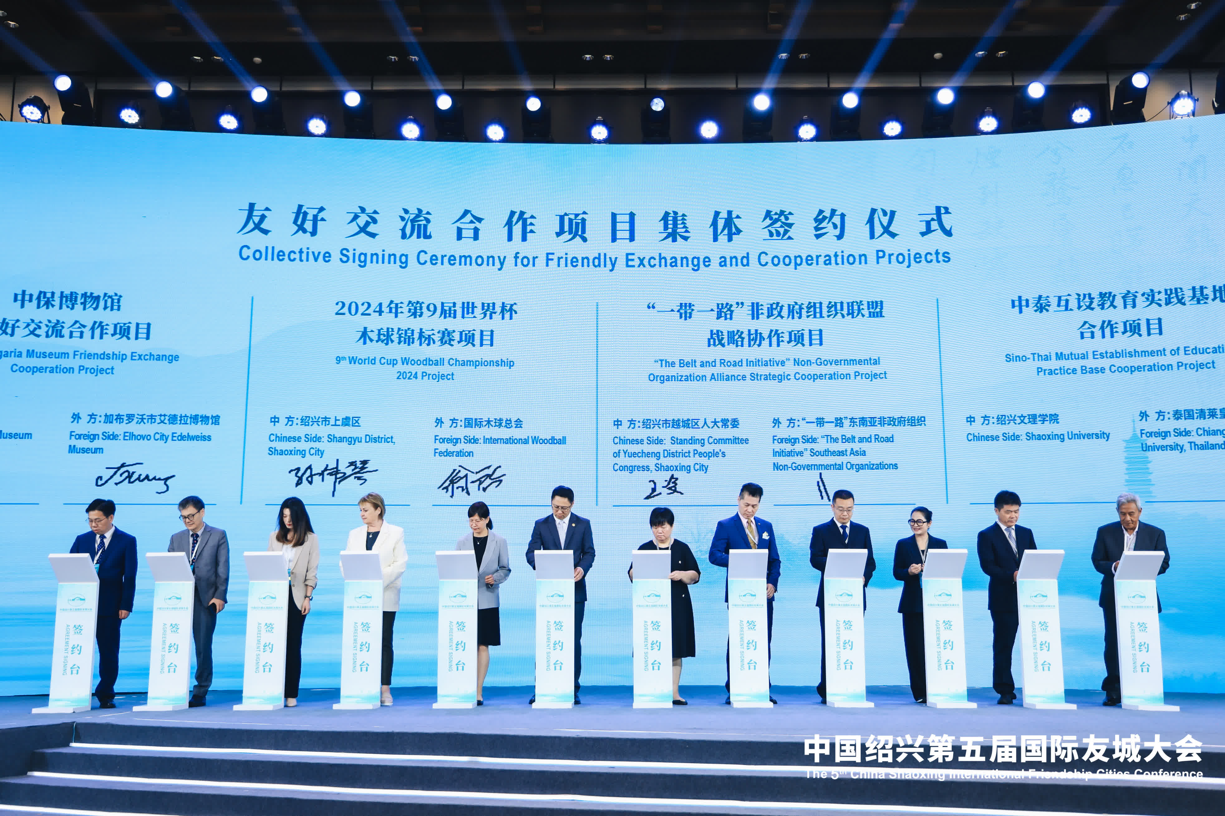 開幕式上,紹興「國際朋友圈」又添新朋友,簽訂了3個國際友好交流關係城市、3個友好交流關係備忘錄,另有中保博物館友好交流、2024年第9屆世界盃木球錦標賽、「一帶一路」非政府組織聯盟戰略協作、中泰互設教育實踐基地等6個合作項目簽約。同時,紹興市還與各國際友城還圍繞城市可持續發展、歷史遺產保護傳承利用、友城交流互鑒等主題,簽署並發布「運河之聲—綠色發展紹興倡議」。