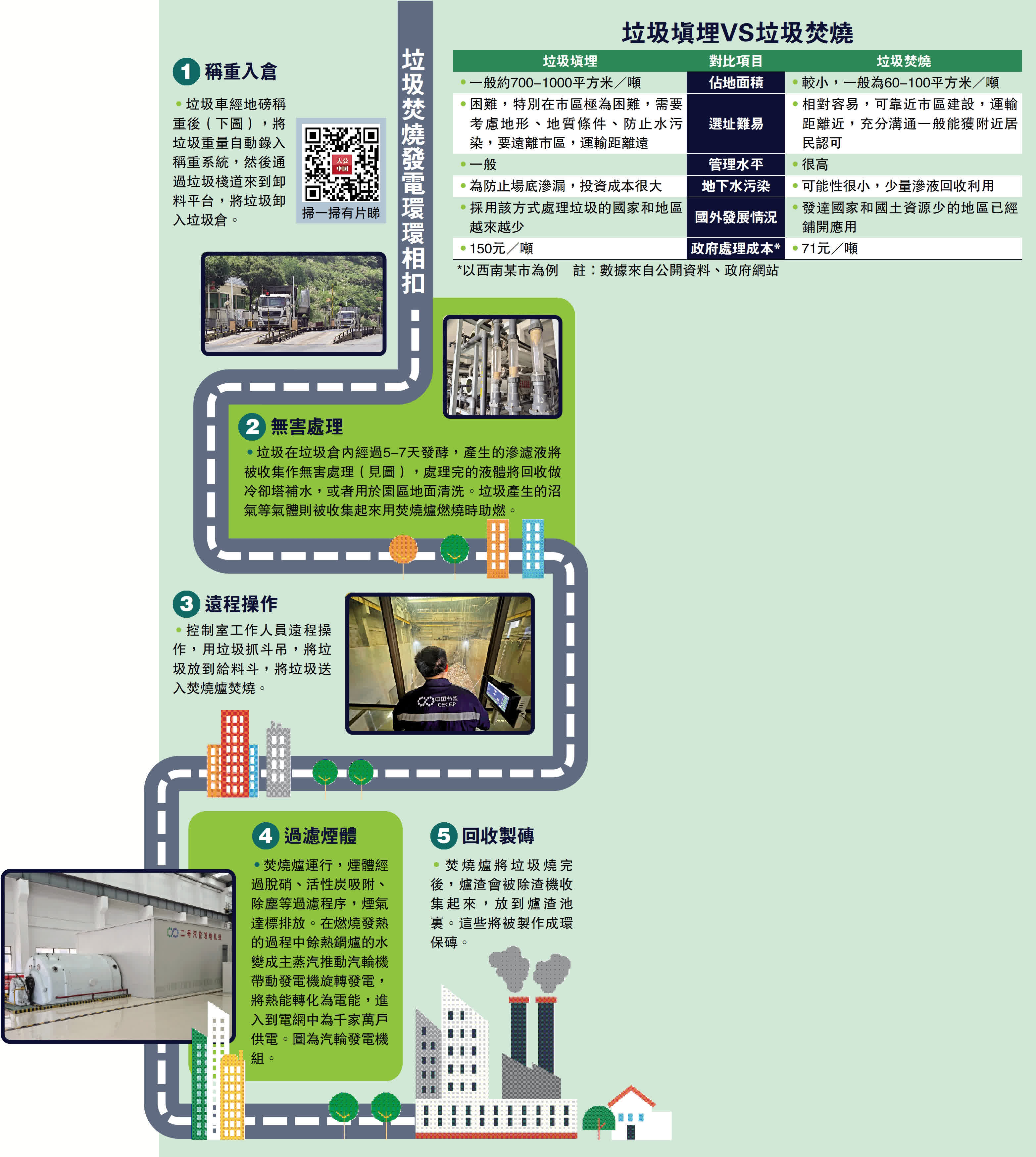 「垃圾焚燒通過相應補貼可在一定時間段內收回前期投入的成本。而垃圾堆填恰恰相反,雖然早期成本低,但到後期為了維繫垃圾堆填,需要投入的成本逐年增加。」莊須剛相信,與其花更多人力物力擴建填埋場,興建焚燒發電廠才是最優解。