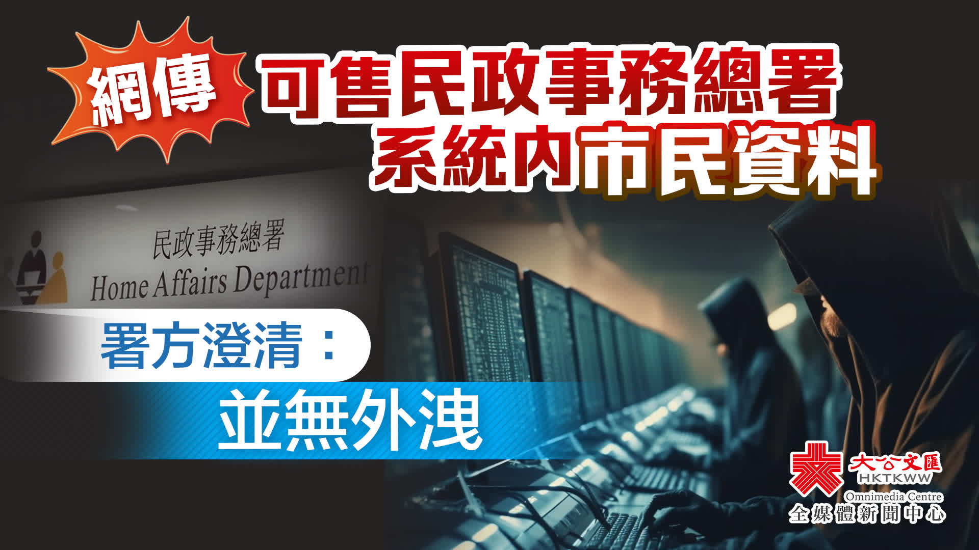 大公文匯全媒體報道,民政事務總署發言人今日(25日)表示,留意到有人在網上平台出售聲稱屬於民政事務總署系統內取得的市民資料。民政事務總署特此澄清,沒有資料外洩。