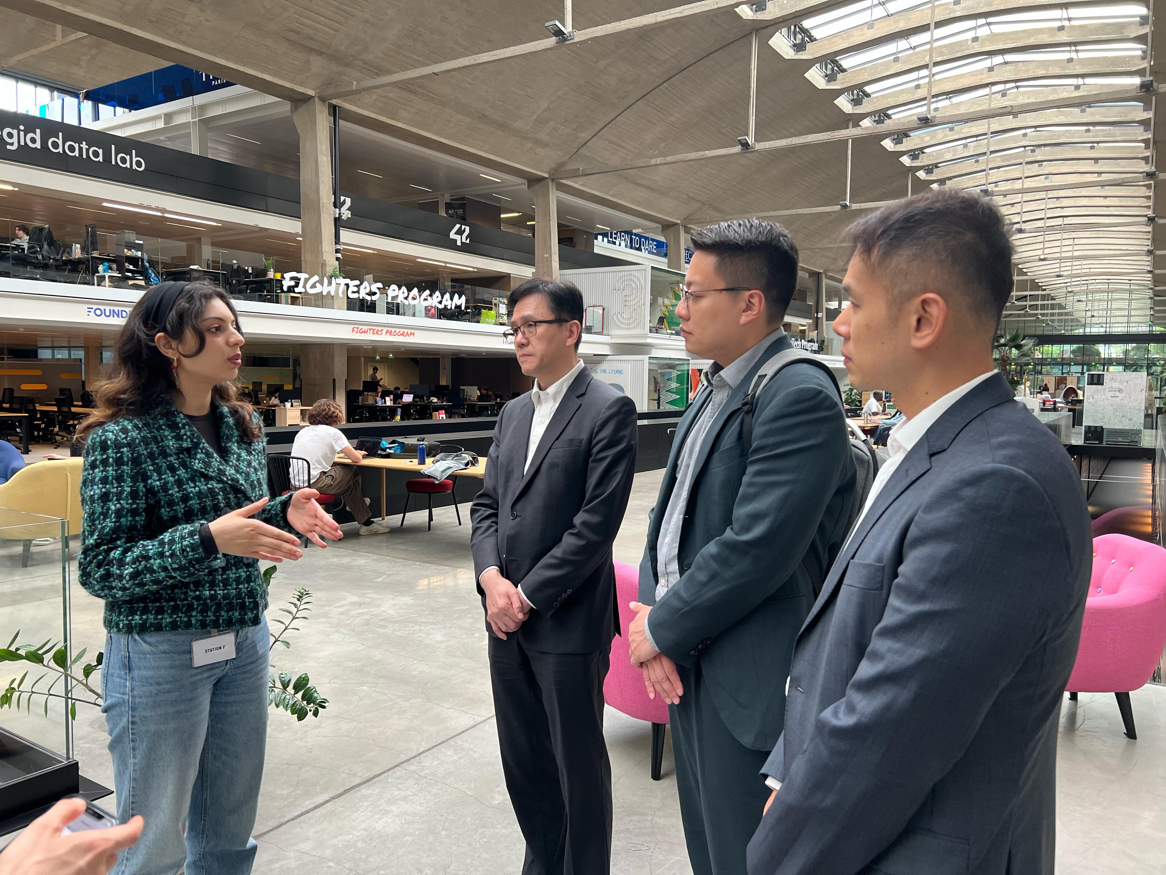 巴黎時間5月24日下午,孫東參觀位於巴黎市中心初創企業園區Station F,了解其運作模式和社群網絡。園區為初創企業提供項目計劃和服務,並有孵化器和加速器進駐,為初創企業提供額外支援。園區亦積極與其他地區的創新園區建立夥伴關係,希望吸引海外的企業進駐,讓園區企業的組成更國際化。