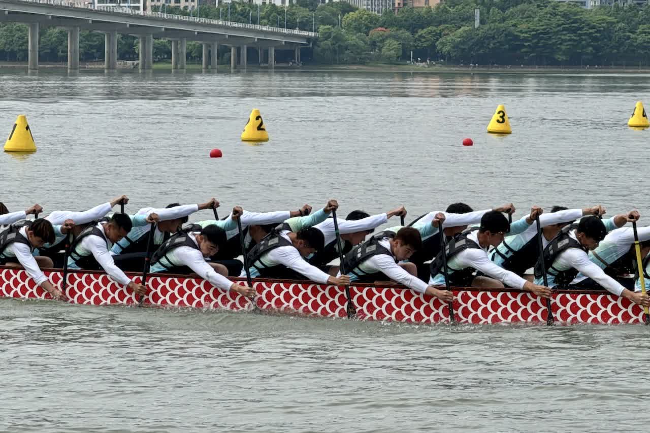 (大公文匯網記者 李紫妍 清遠報道)鑼鼓齊鳴,龍獅喧騰,位於北江之濱的廣東省清遠市鳳城廣場人頭攢動,市民們早早聚集在這裏,等着觀看今年最早的一場「賽龍舟」活動。2024中國龍舟公開賽(廣東·清遠站)暨清遠市第十八屆龍舟錦標賽25日在清遠市舉行,吸引了來自全國各地的20支頂尖職業隊伍和12支本土隊伍同江競渡。隨着號令槍響,一支支窄長龍舟像離弓利箭,飛速破水前行,龍舟手們個個繃緊身體穩坐舟上,應着鼓聲和口號聲奮力劃槳,激起江面水花不斷。岸邊觀賽群眾更是熱情非常,大聲叫喊着為運動員鼓勁加油,全城老少都沉浸在這熱烈氣氛中。