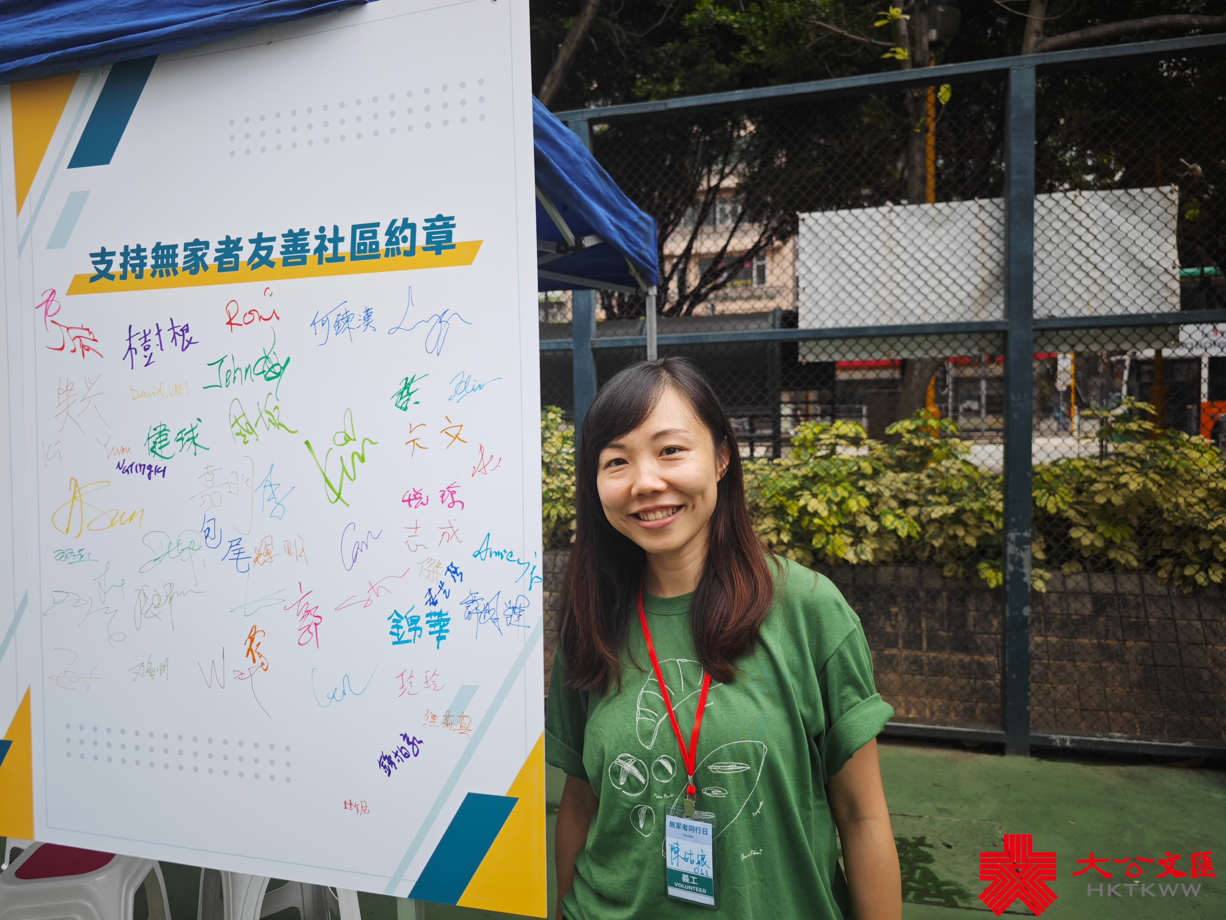 基督教關懷無家者協會社工陳姑娘表示,很多「老友記」(無家者的匿稱)透過前期策劃、布置會場、當值攤位等方式參與活動,主辦方期望整個活動並非只有受薪員工參與,而是有「老友記」共同合作,一起服務社區。