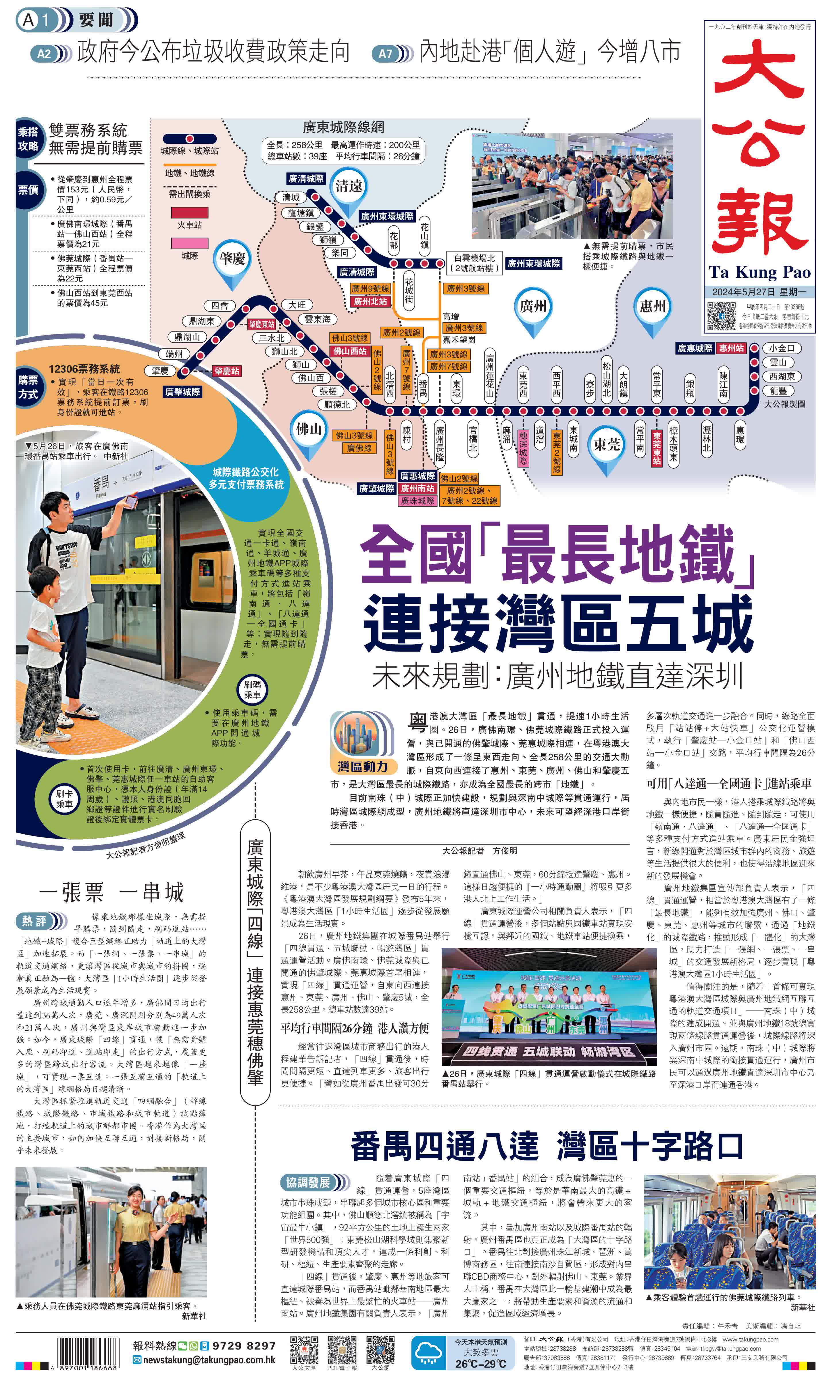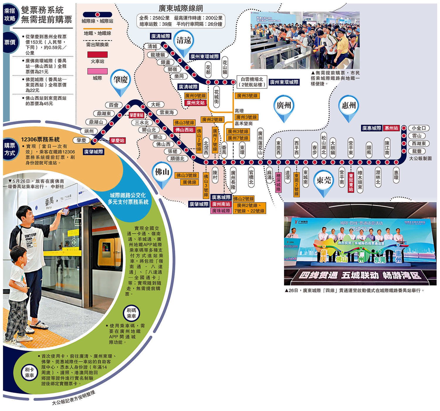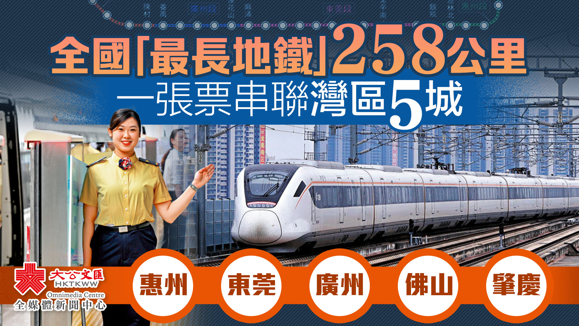 (大公報記者 方俊明)粵港澳大灣區「最長地鐵」貫通,提速1小時生活圈。26日,廣佛南環、佛莞城際鐵路正式投入運營,與已開通的佛肇城際、莞惠城際相連,在粵港澳大灣區形成了一條呈東西走向、全長258公里的交通大動脈,自東向西連接了惠州、東莞、廣州、佛山和肇慶五市,是大灣區最長的城際鐵路,亦成為全國最長的跨市「地鐵」。
