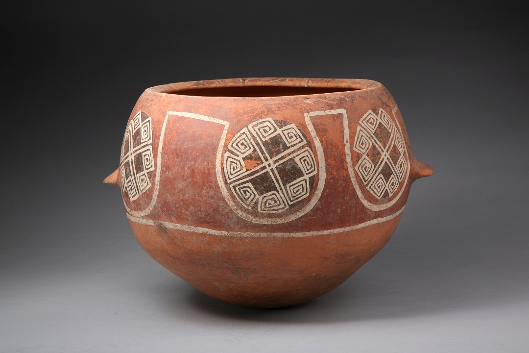 該展品出土於屬於距今約4000年的龍山文化時期。高柄杯表面烏黑光亮,腹中部有弦紋帶一周,柄上有弦紋帶兩周,中間有鏤空帶三周。器皿外壁薄如蛋殼,晶瑩剔透,被譽為「黑如漆,薄如紙,明如鏡,硬如瓷」,是中國史前製陶技藝的巔峰之作。它是貴族進行祭祀、宴饗等重大禮儀活動時使用的禮器,具等級理念和禮制內涵。由於年代久遠,存世完整的蛋殼黑陶高柄杯極為罕見。